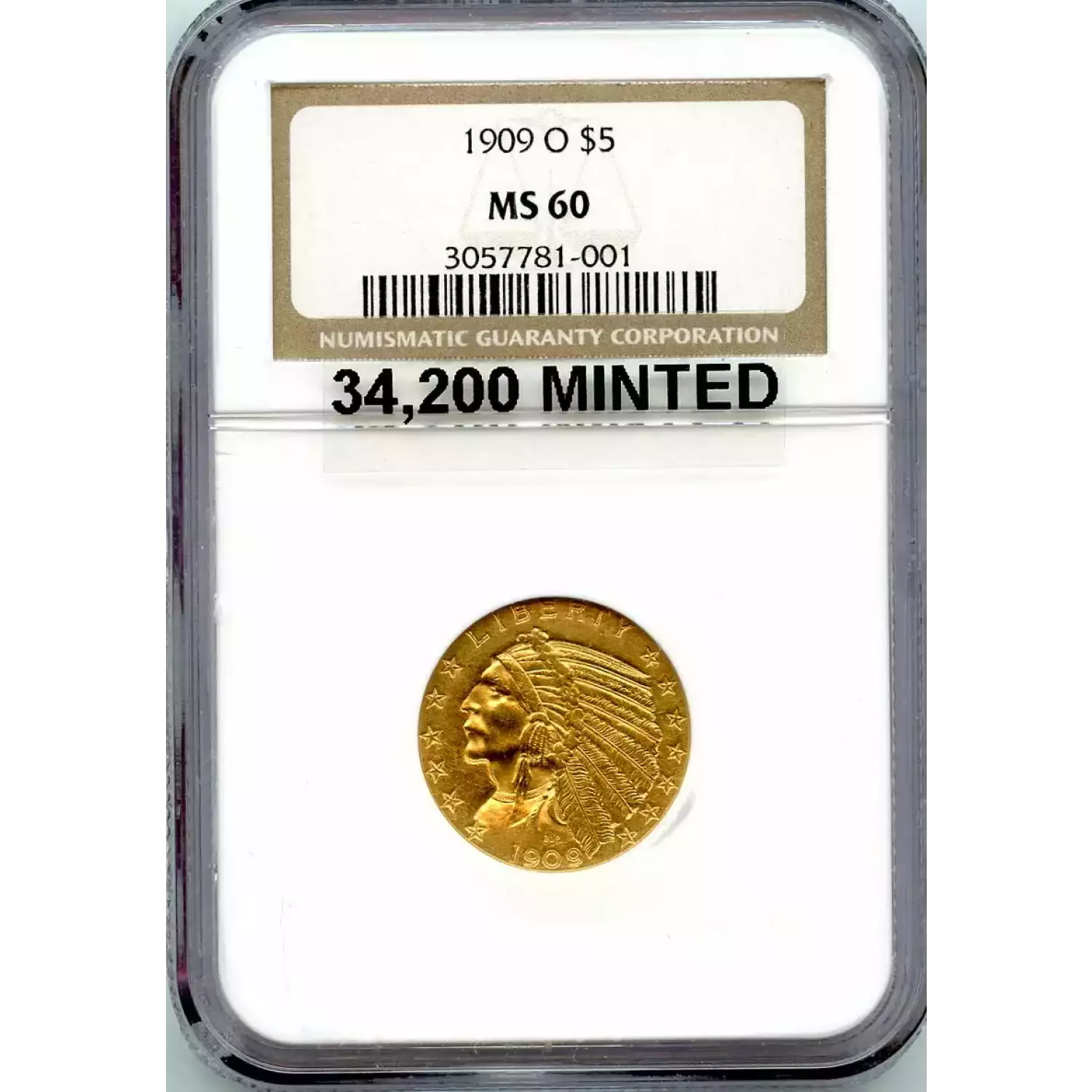 509124 | 1909-MS-60 Gold Half Eagles $5 Indian Head NGC MS-60 | NGC | MS-60 | Sold: 11/09/2017 | $32,500 |