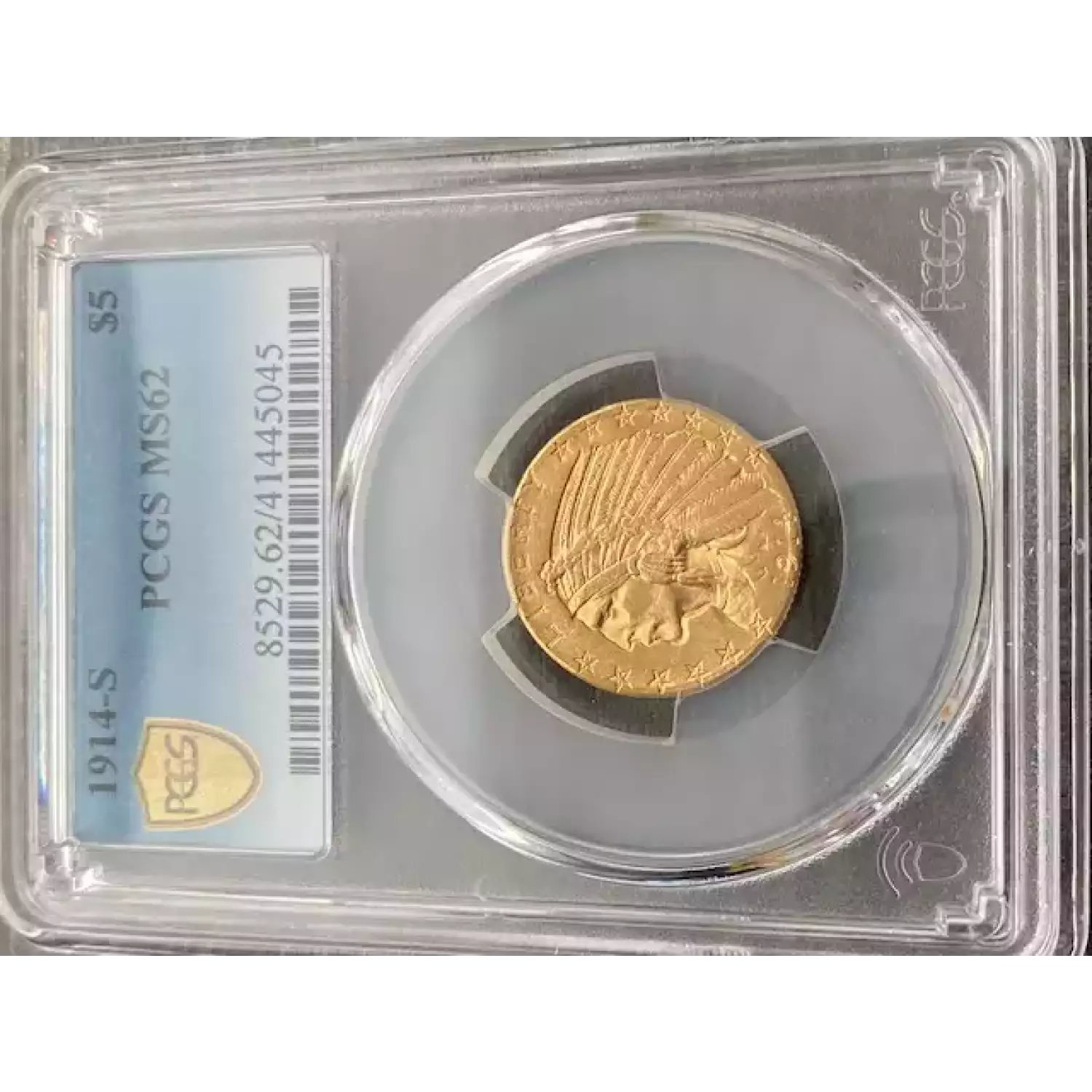 517166 | 1914-S Gold Half Eagles $5 Indian Head PCGS MS-62 | PCGS | MS-62 | Sold: 10/03/2023 | $6,000 |