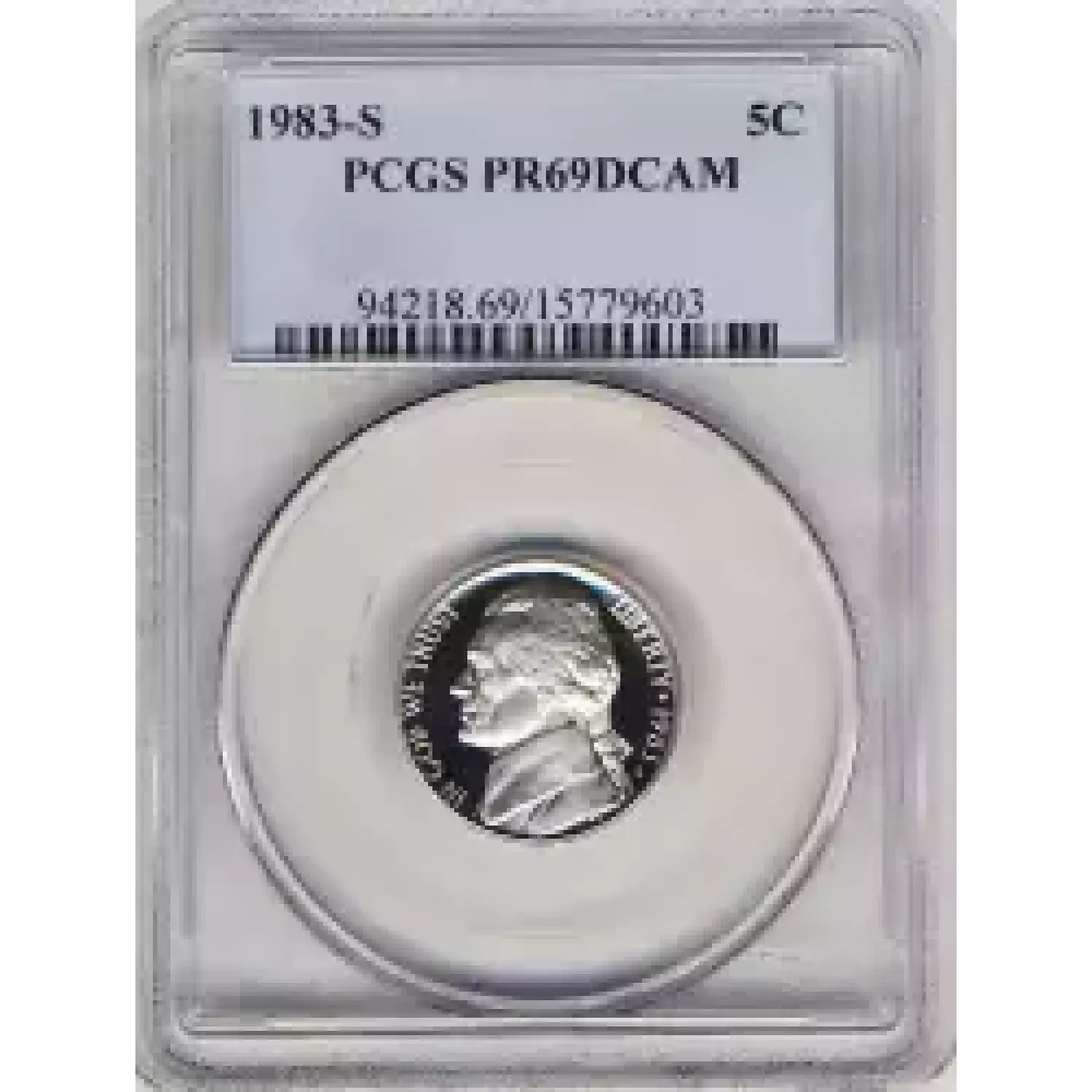 505924 | 1983-PR-69 Nickel Jefferson PCGS PR-69 DCAM | PCGS | PR-69 | Sold: 26/01/2012 | $5.50 |