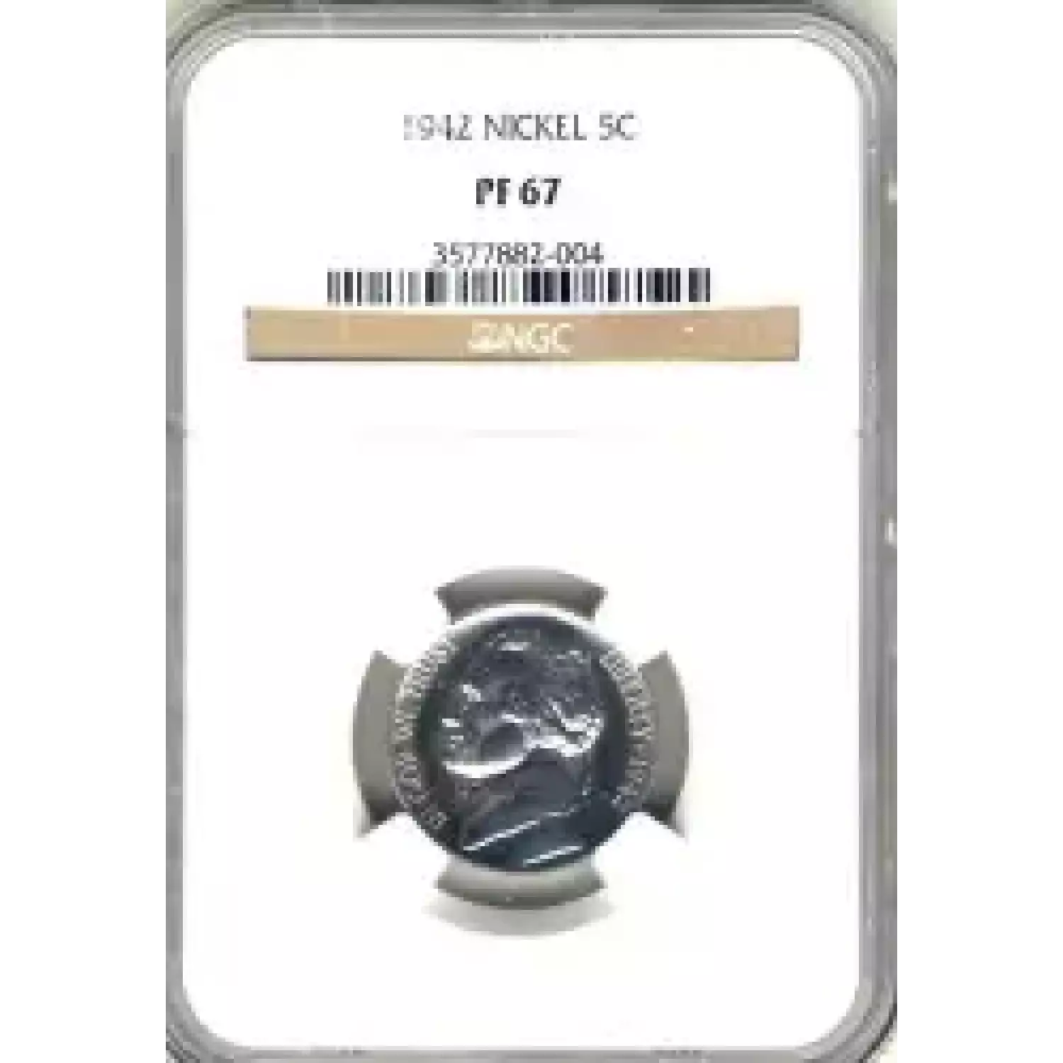 505927 | 1942-PF-67 Nickel Jefferson NGC PF-67 | NGC | PF-67 | Sold: 19/08/2012 | $92 |