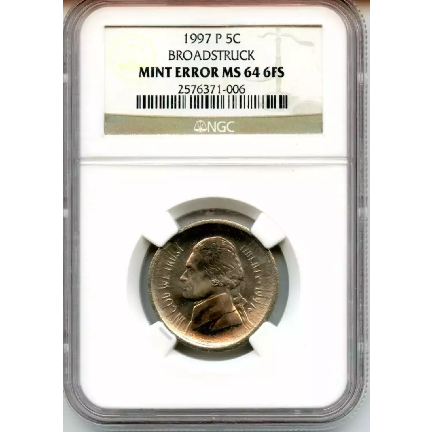 508988 | 1997-MS-64 Nickel Jefferson NGC MS-64 | NGC | MS-64 | Sold: 03/10/2016 | $135 |