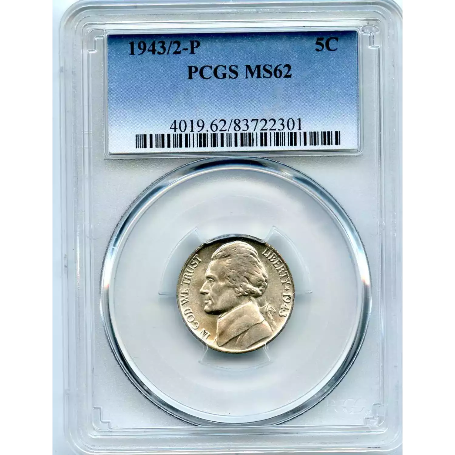 511424 | 1943/2-MS-62 Nickel Jefferson PCGS MS-62 | PCGS | MS-62 | Sold: 17/01/2018 | $292.50 |