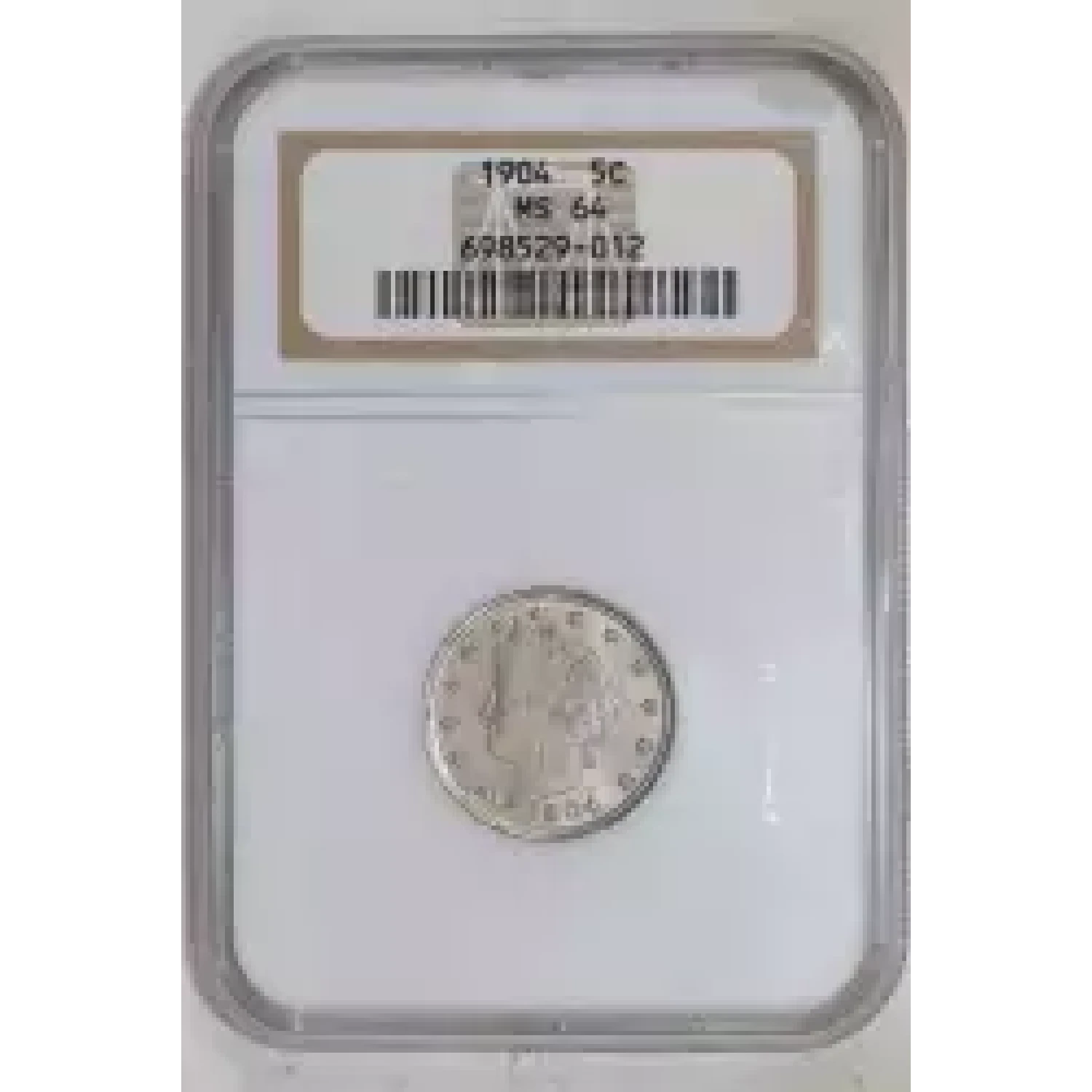 520385 | 1904 Nickel Liberty Head NGC MS-64 | NGC | MS-64 | Sold: 31/10/2023 | $235 |