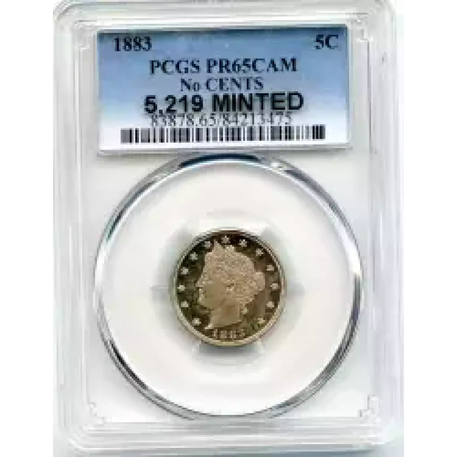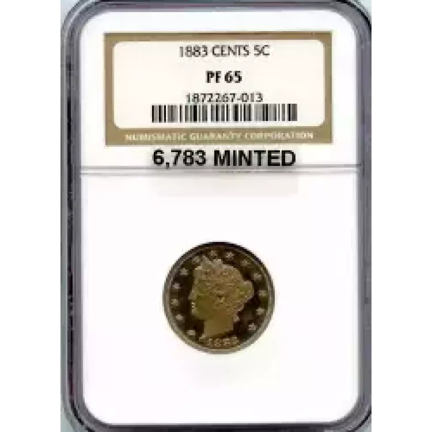 512033 | 1883-PR-65 Nickel Liberty Head NGC PR-65 CAM | NGC | PR-65 | Sold: 20/08/2018 | $625 |