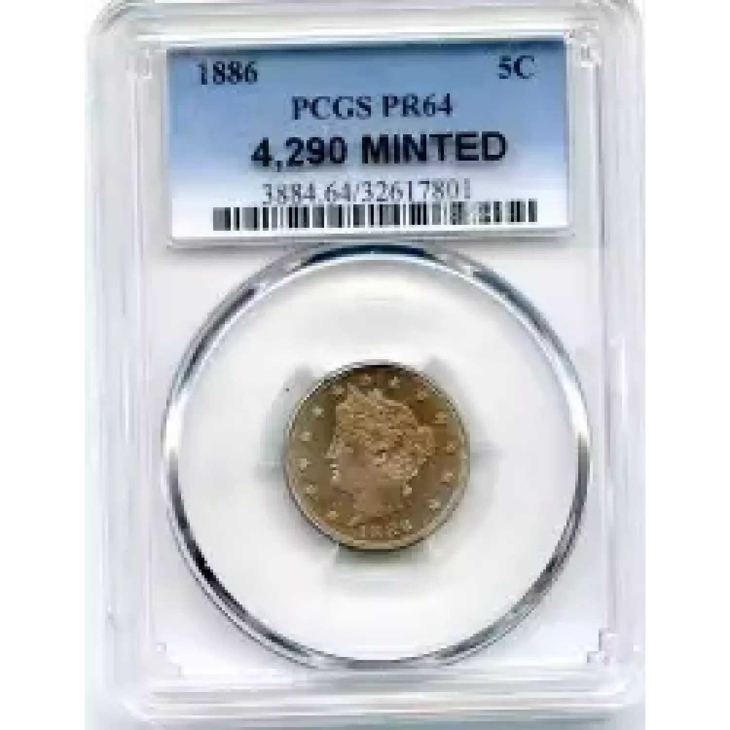 534472 | 1886 Nickel Liberty Head PCGS PR-65 | PCGS | PR-65 | Sold: 09/10/2025 | $875 |