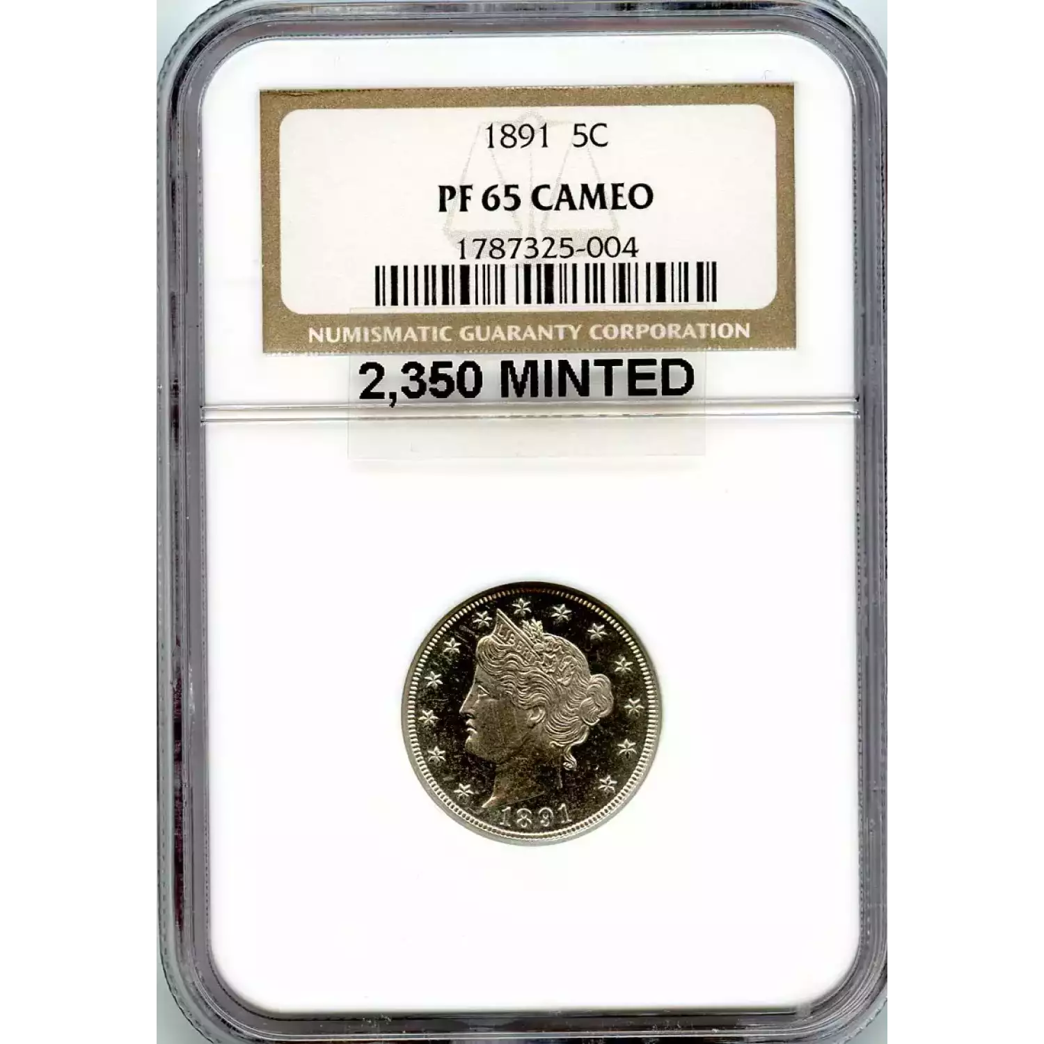 515401 | 1891 Nickel Liberty Head NGC PF-64 CAMEO | NGC | PF-64 | Sold: 08/05/2023 | $450 |