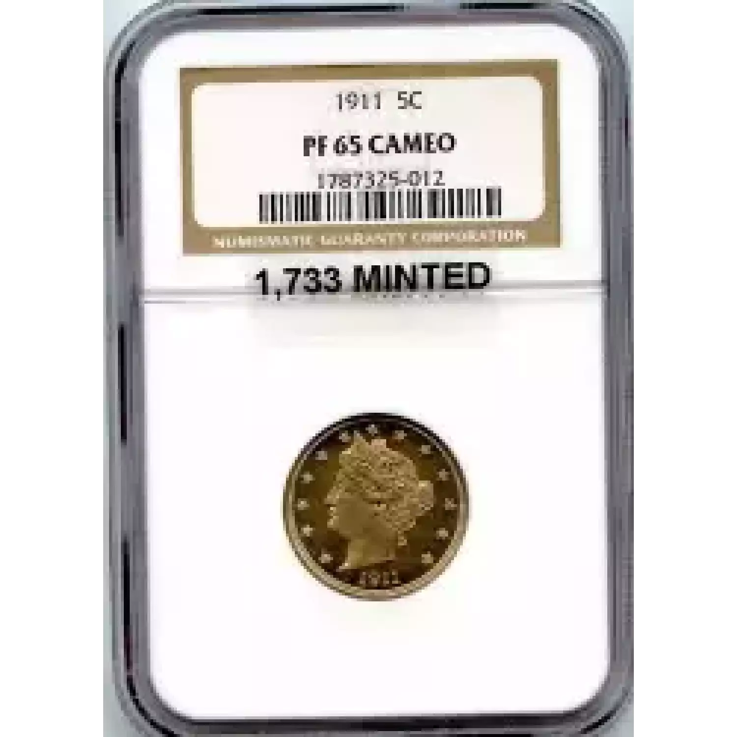 512205 | 1911-PR-65 Nickel Liberty Head NGC PR-65 CAM | NGC | PR-65 | Sold: 28/04/2019 | $475 |