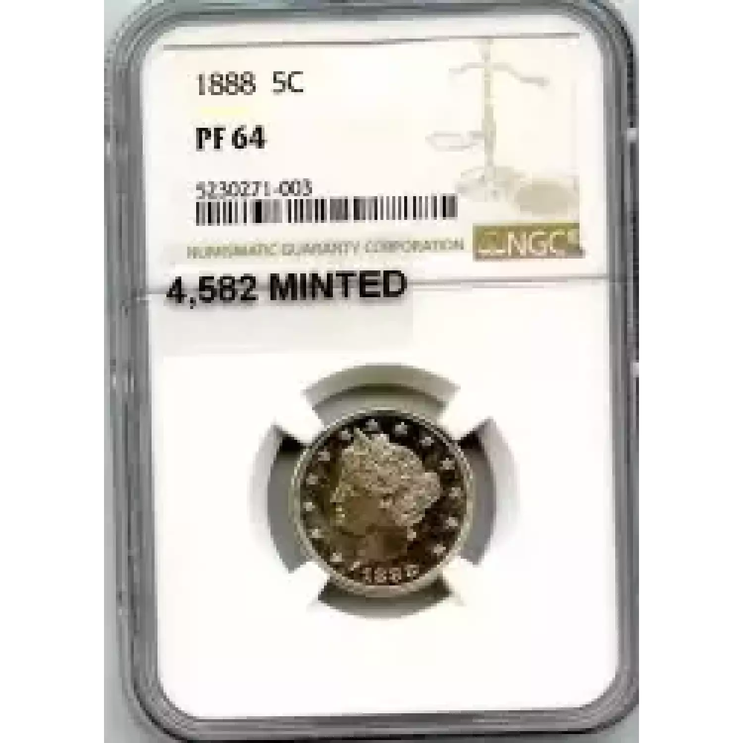512207 | 1888-PR-64 Nickel Liberty Head NGC PR-64 | NGC | PR-64 | Sold: 16/12/2018 | $250 |