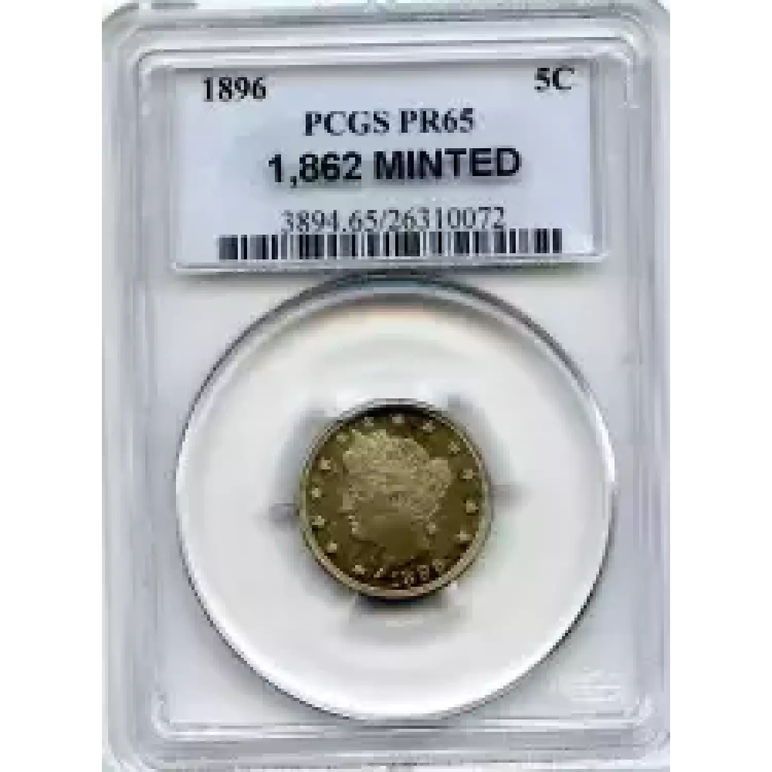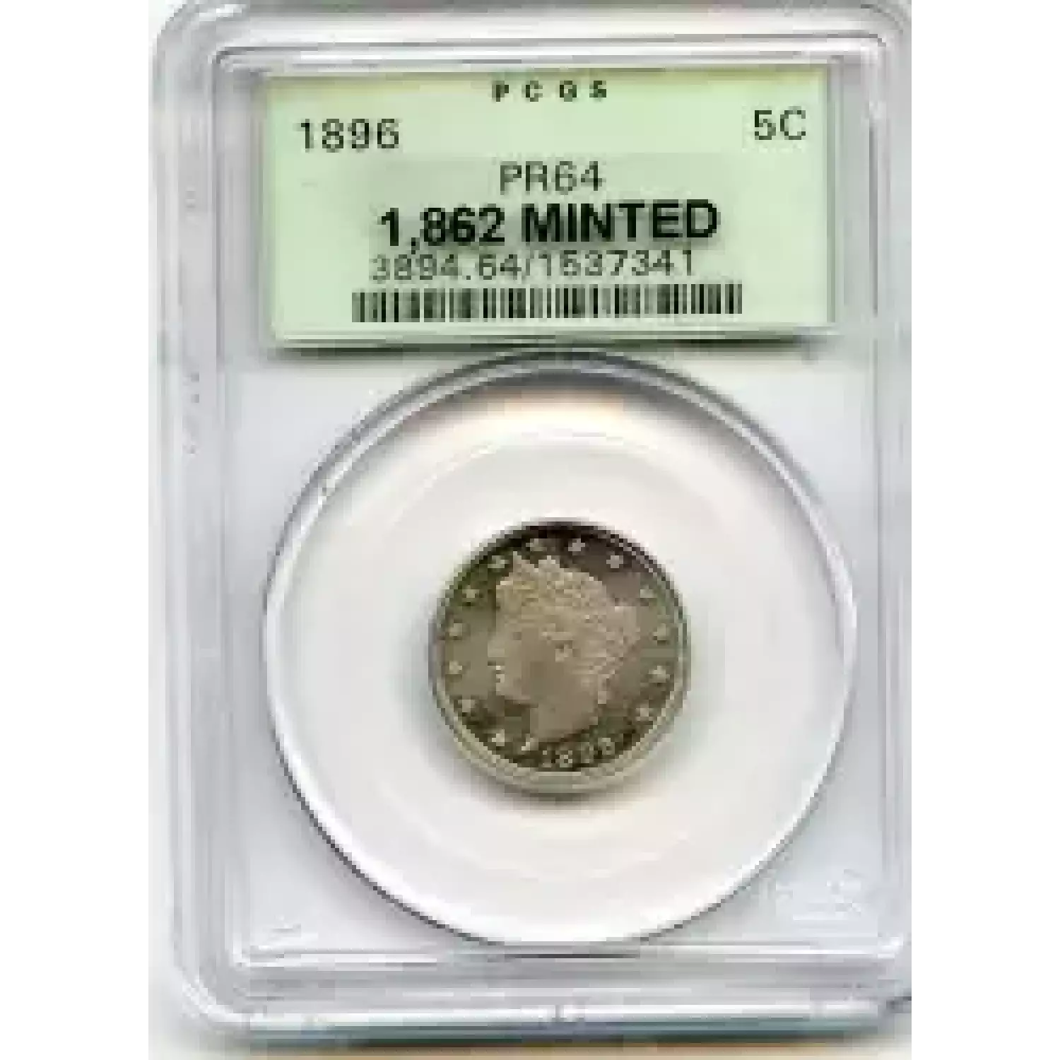 512494 | 1896-PR-64 Nickel Liberty Head PCGS PR-64 | PCGS | PR-64 | Sold: 10/02/2019 | $325 |