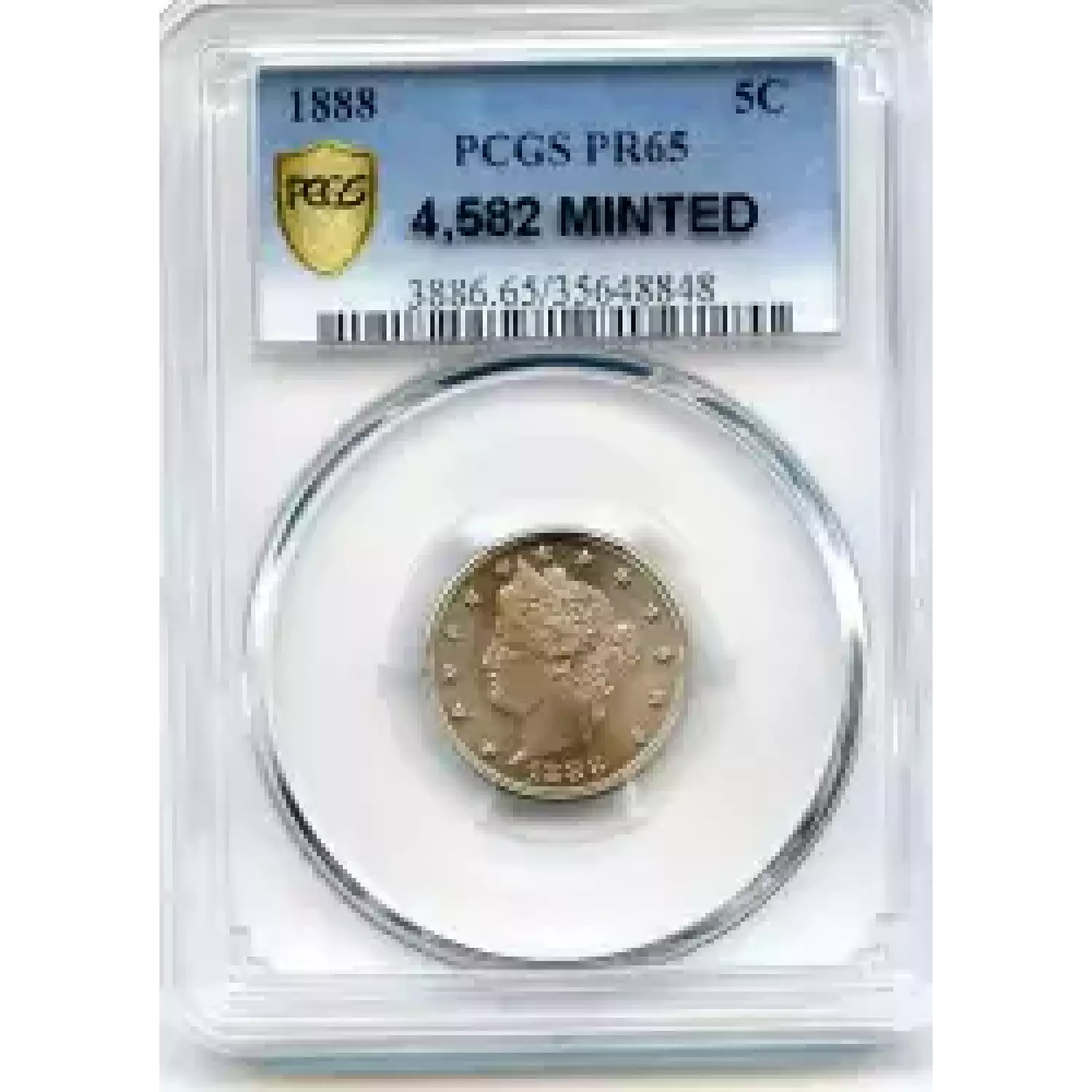 512296 | 1888-PR-65 Nickel Liberty Head PCGS PR-65 | PCGS | PR-65 | Sold: 28/04/2019 | $385 |