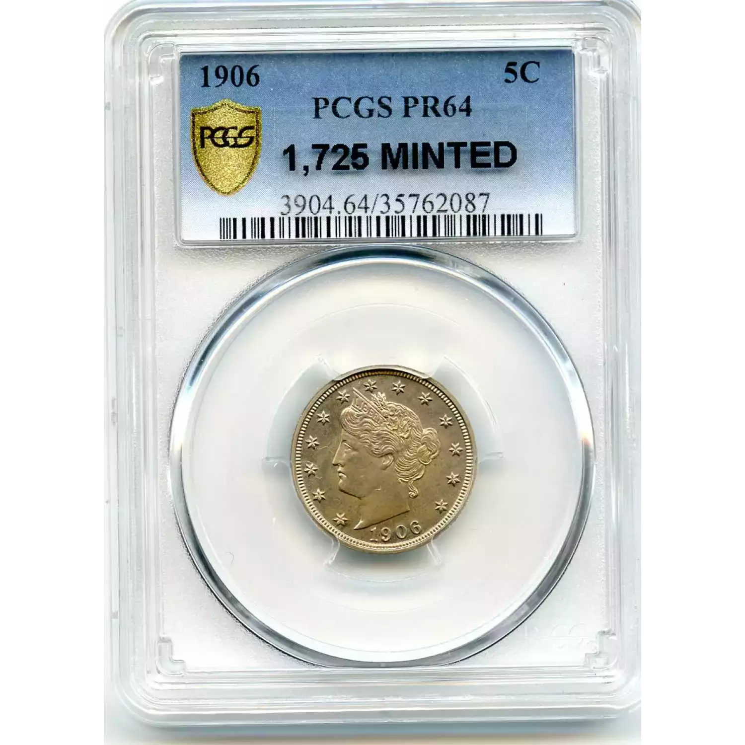 512300 | 1906-PR-64 Nickel Liberty Head PCGS PR-64 | PCGS | PR-64 | Sold: 02/10/2019 | $280 |