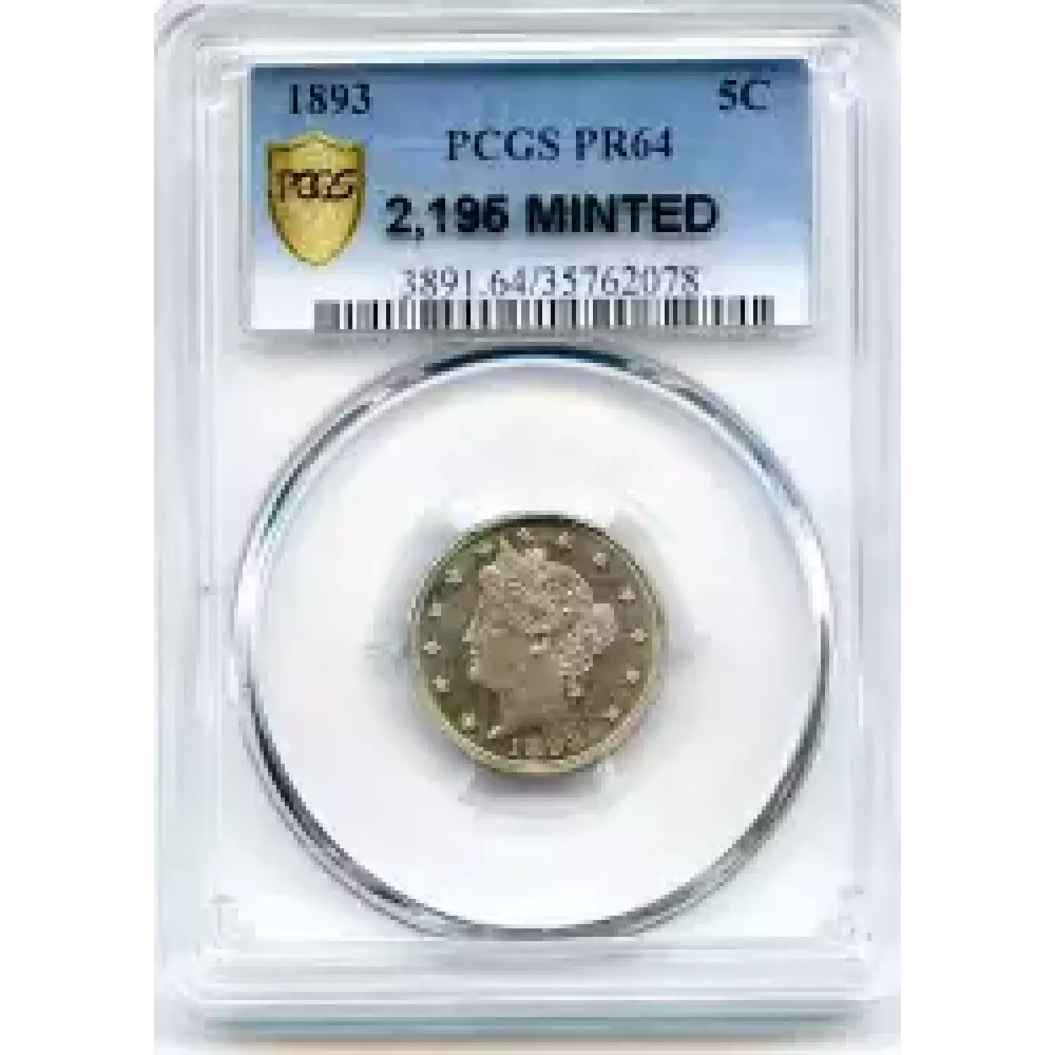 512213 | 1893-PR-63 Nickel Liberty Head PCGS PR-63 | PCGS | PR-63 | Sold: 03/06/2019 | $225 |
