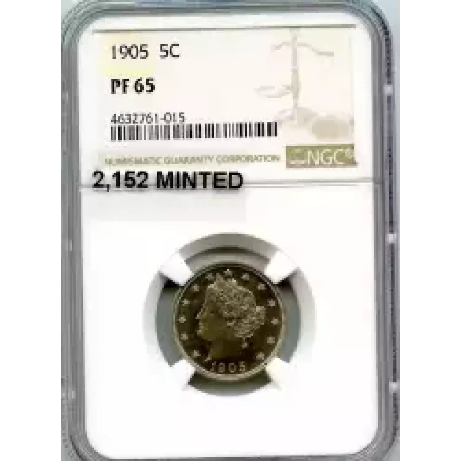 512536 | 1905-PR-65 Nickel Liberty Head NGC PR-65 | NGC | PR-65 | Sold: 02/10/2019 | $385 |