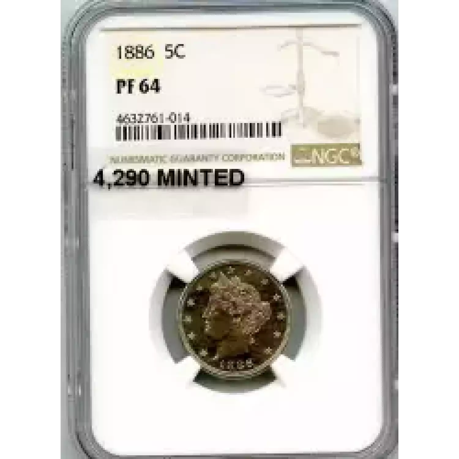 511960 | 1886-PR-64 Nickel Liberty Head PCGS PR-64 | PCGS | PR-64 | Sold: 17/04/2020 | $700 |