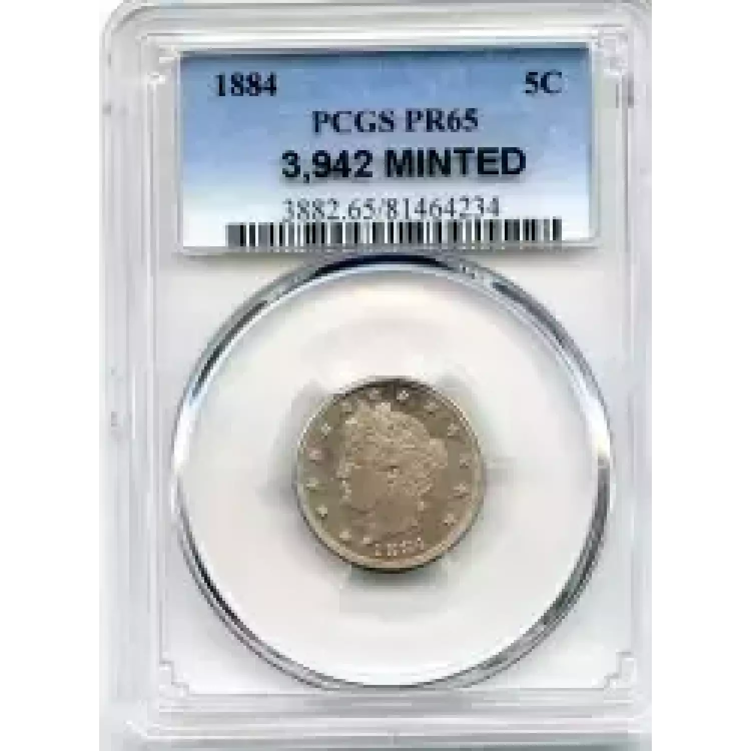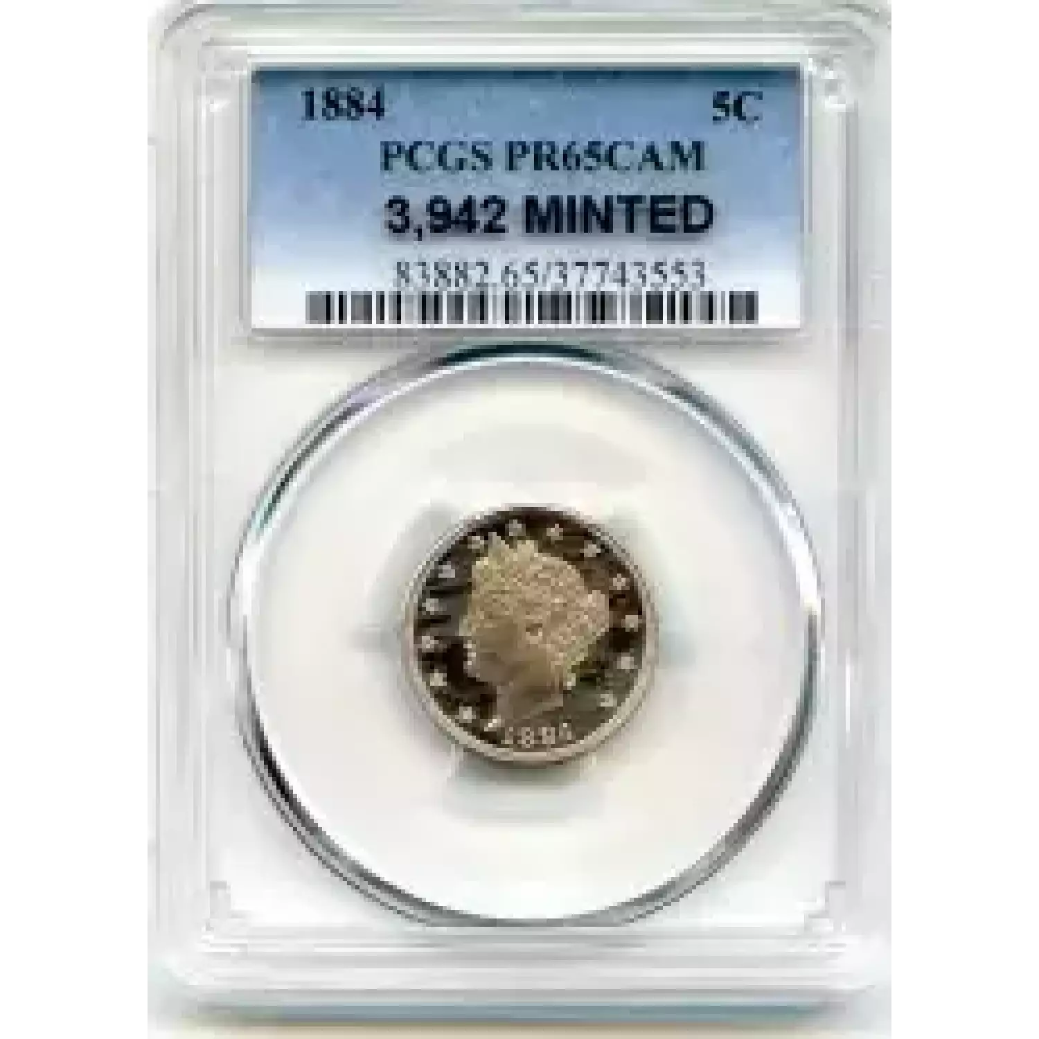 512845 | 1884-PR-65 Nickel Liberty Head PCGS PR-65 | PCGS | PR-65 | Sold: 02/10/2019 | $385 |