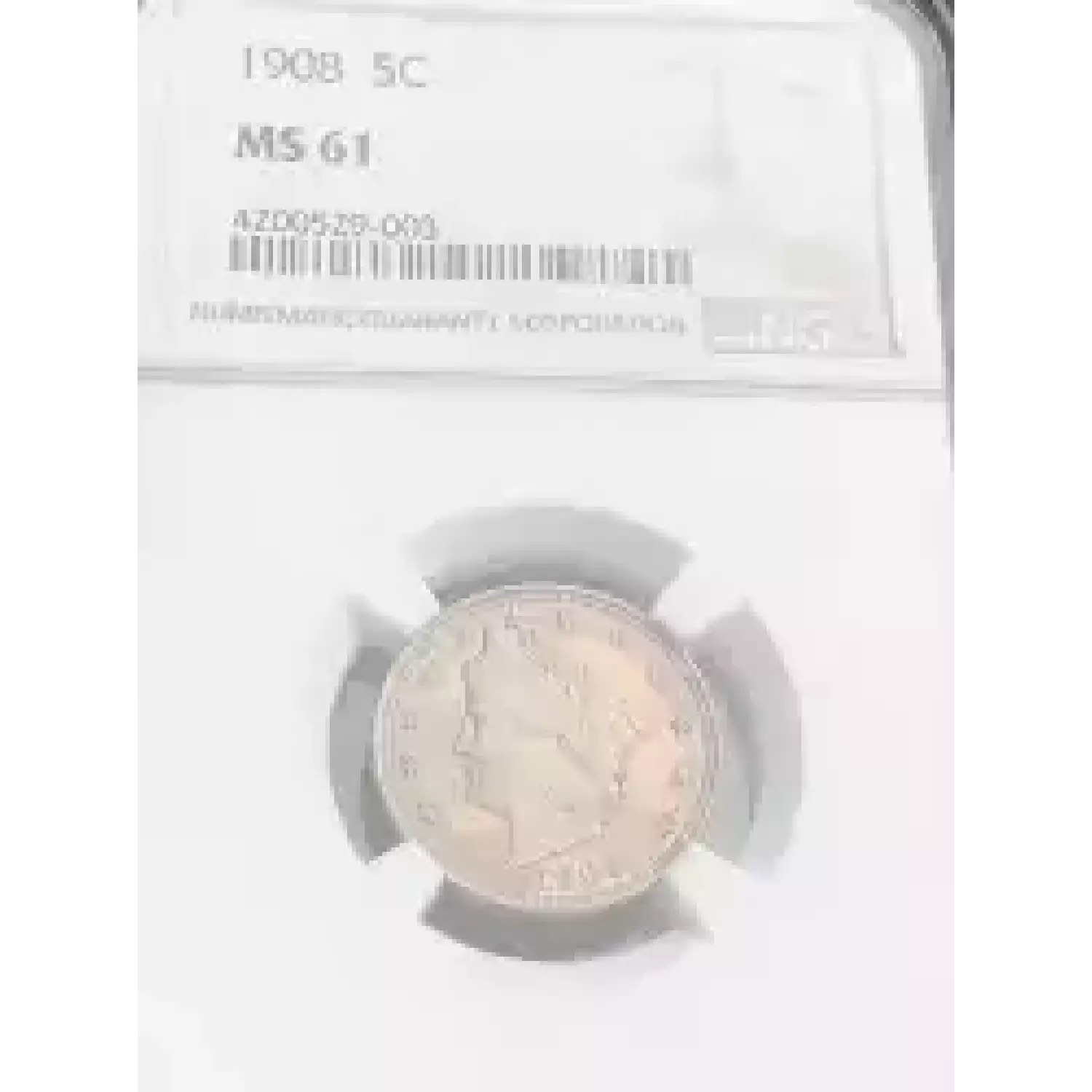 512803 | 1908-MS-61 Nickel Liberty Head NGC MS-61 | NGC | MS-61 | Sold: 04/05/2019 | $125 |