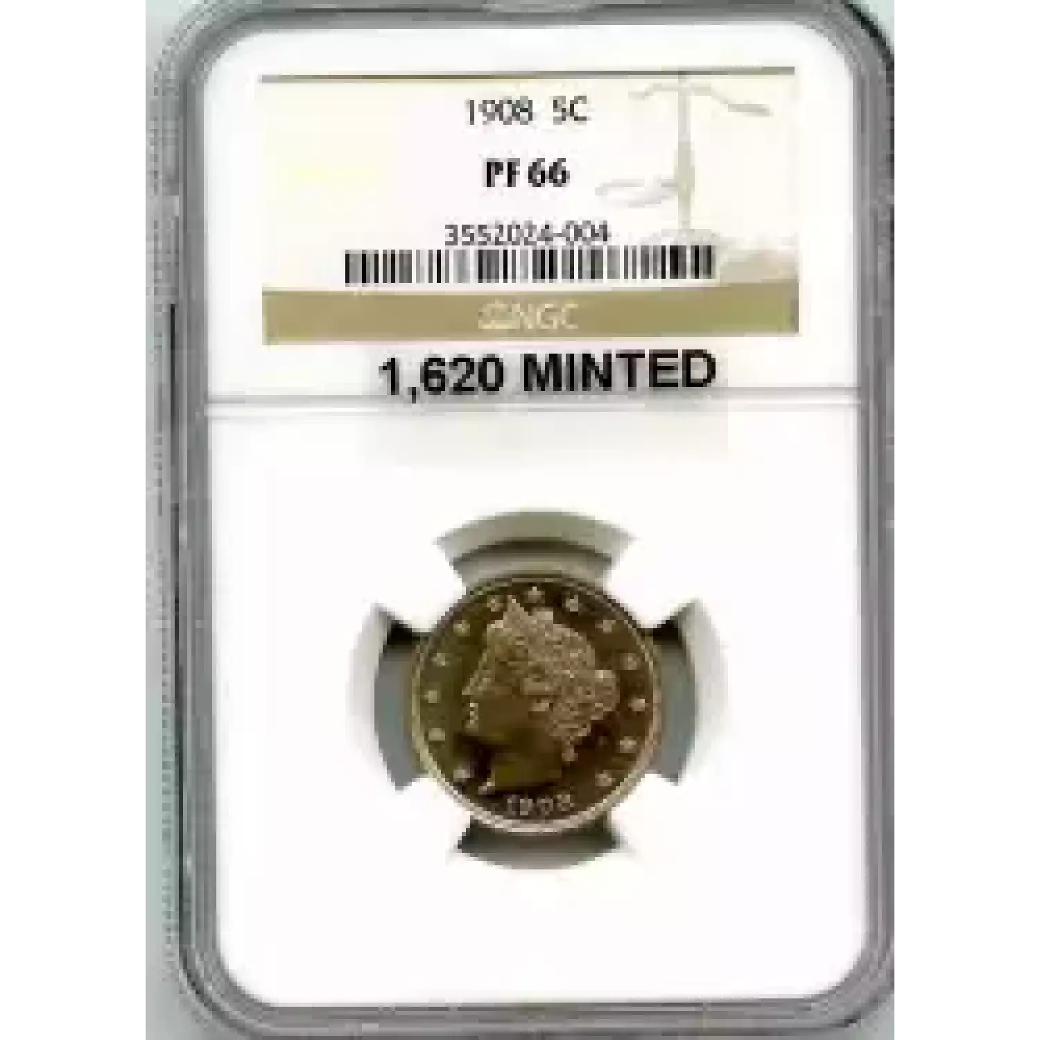 512873 | 1908-PR-66 Nickel Liberty Head NGC PR-66 | NGC | PR-66 | Sold: 02/10/2019 | $520 |