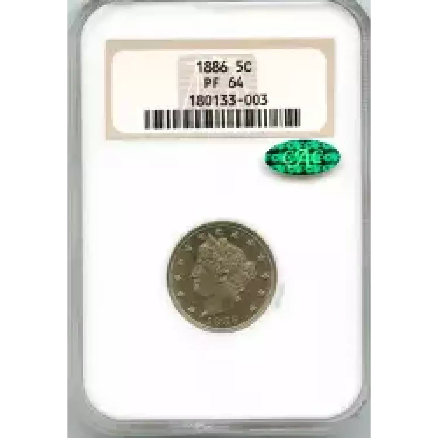 513087 | 1886-PR-64 Nickel Liberty Head NGC PR-64 CAC | NGC | PR-64 | Sold: 05/11/2019 | $675 |