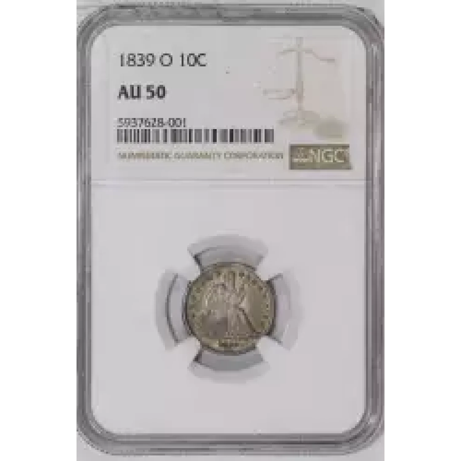501143 | 1839-O Liberty Seated Dime NGC AU-50 | NGC | AU-50 | Sold: 24/06/2022 | $650 |
