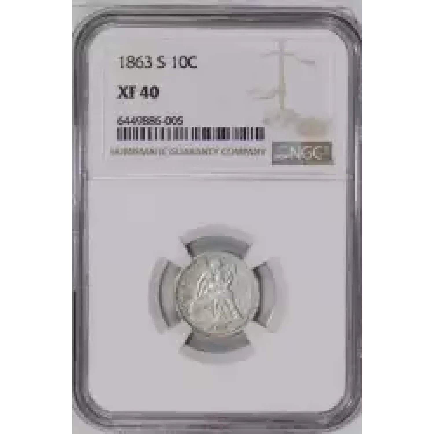 501499 | 1863-S Liberty Seated Dime NGC XF-40 | NGC | XF-40 | Sold: 24/06/2022 | $995 |
