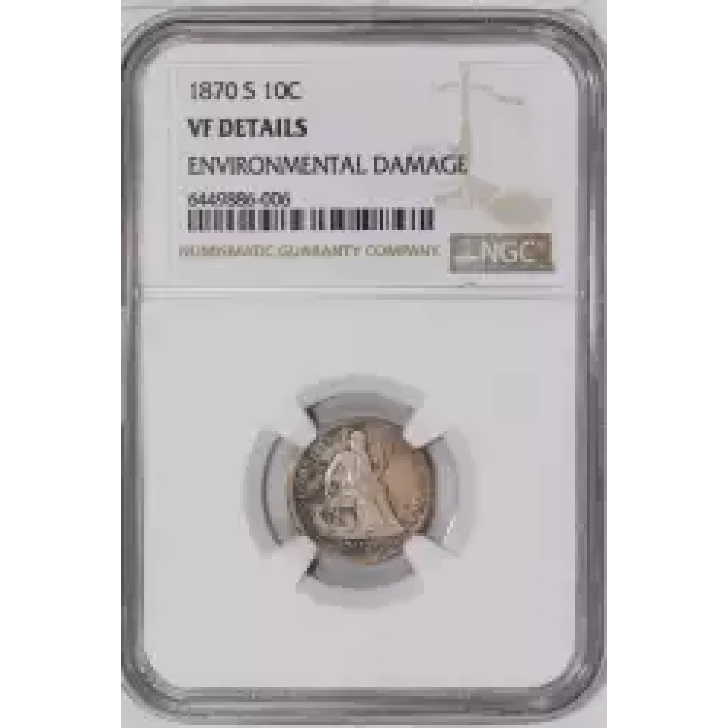 501500 | 1870-S Liberty Seated Dime NGC VF Details | NGC | VF Details | Sold: 01/09/2023 | $800 |