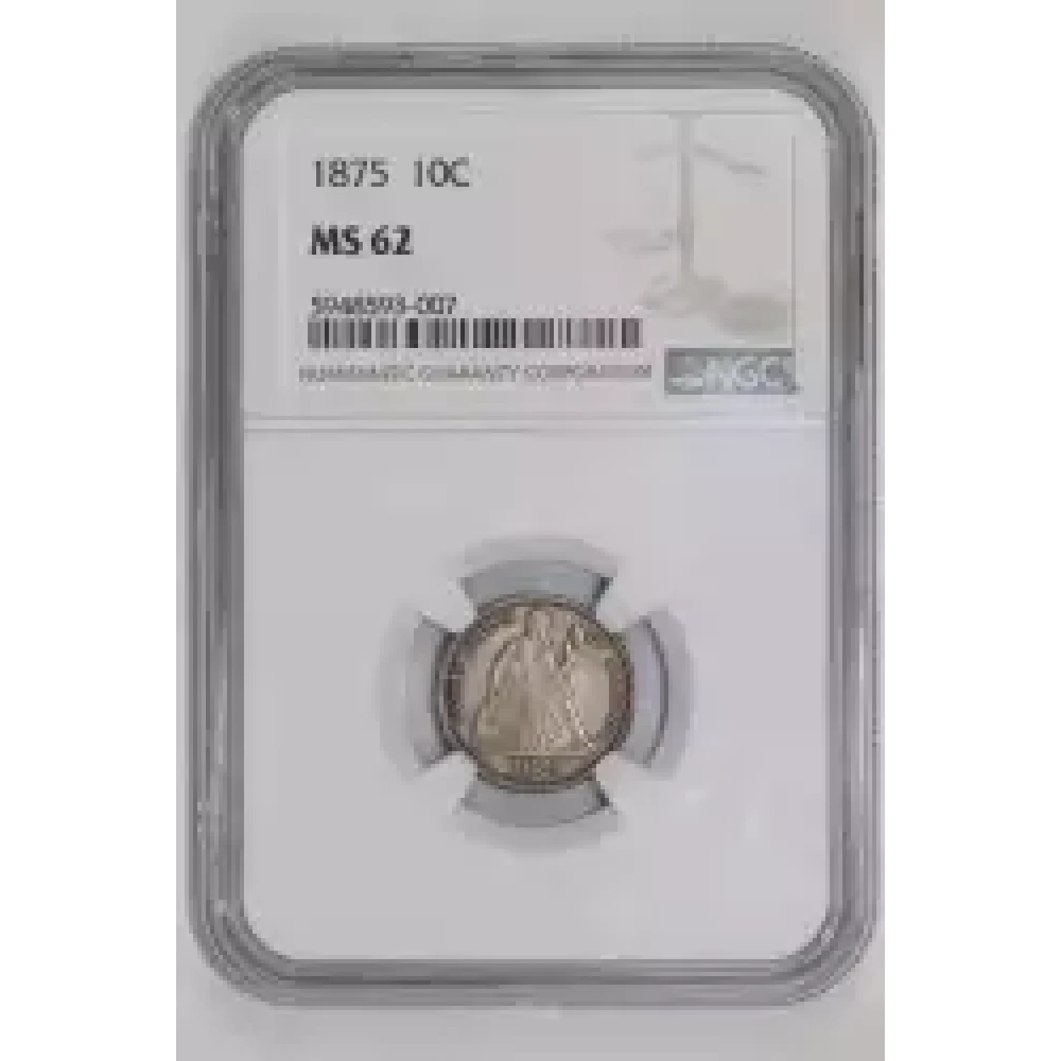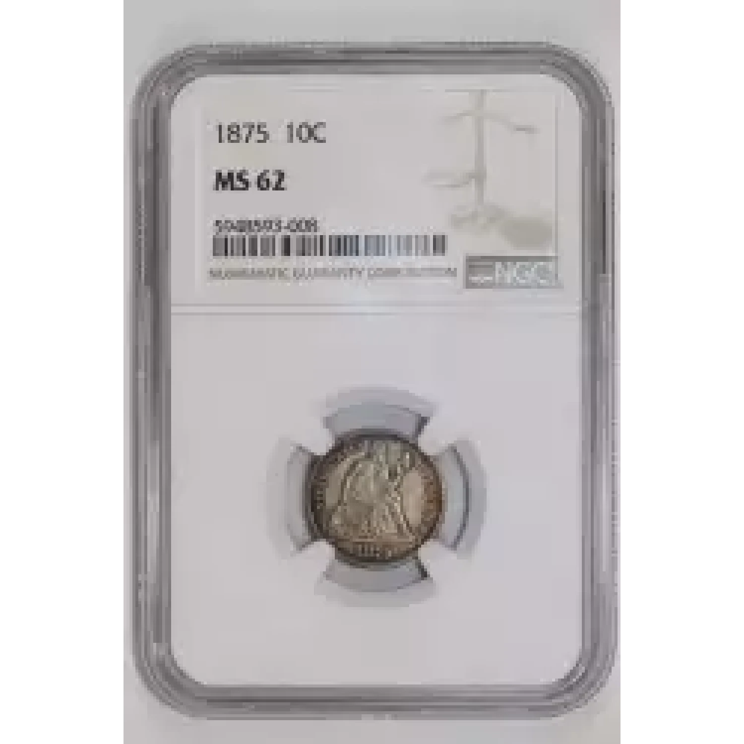505908 | 1875-MS-62 Liberty Seated Dime PCGS MS-62 | PCGS | MS-62 | Sold: 14/01/2012 | $180 |