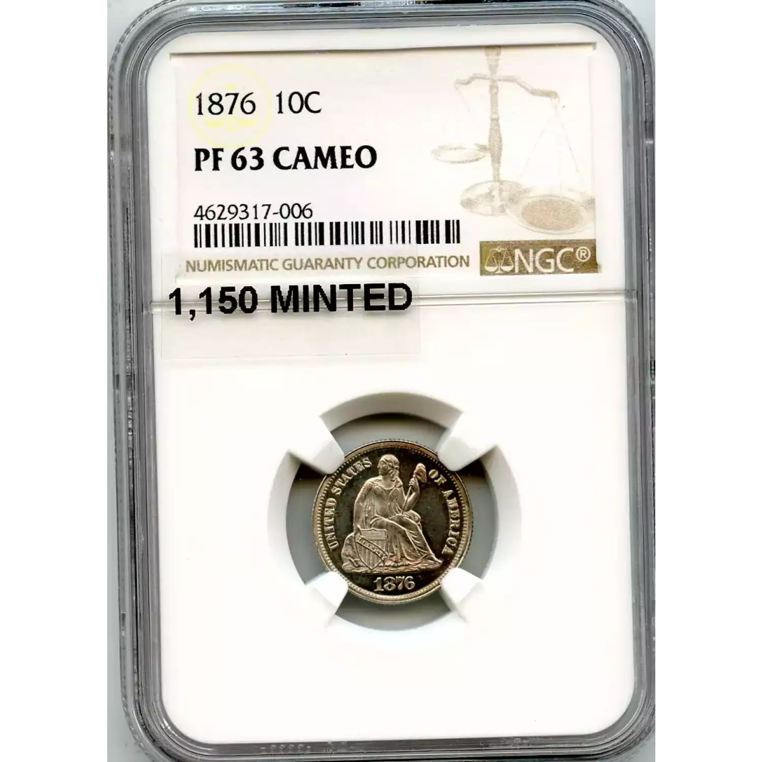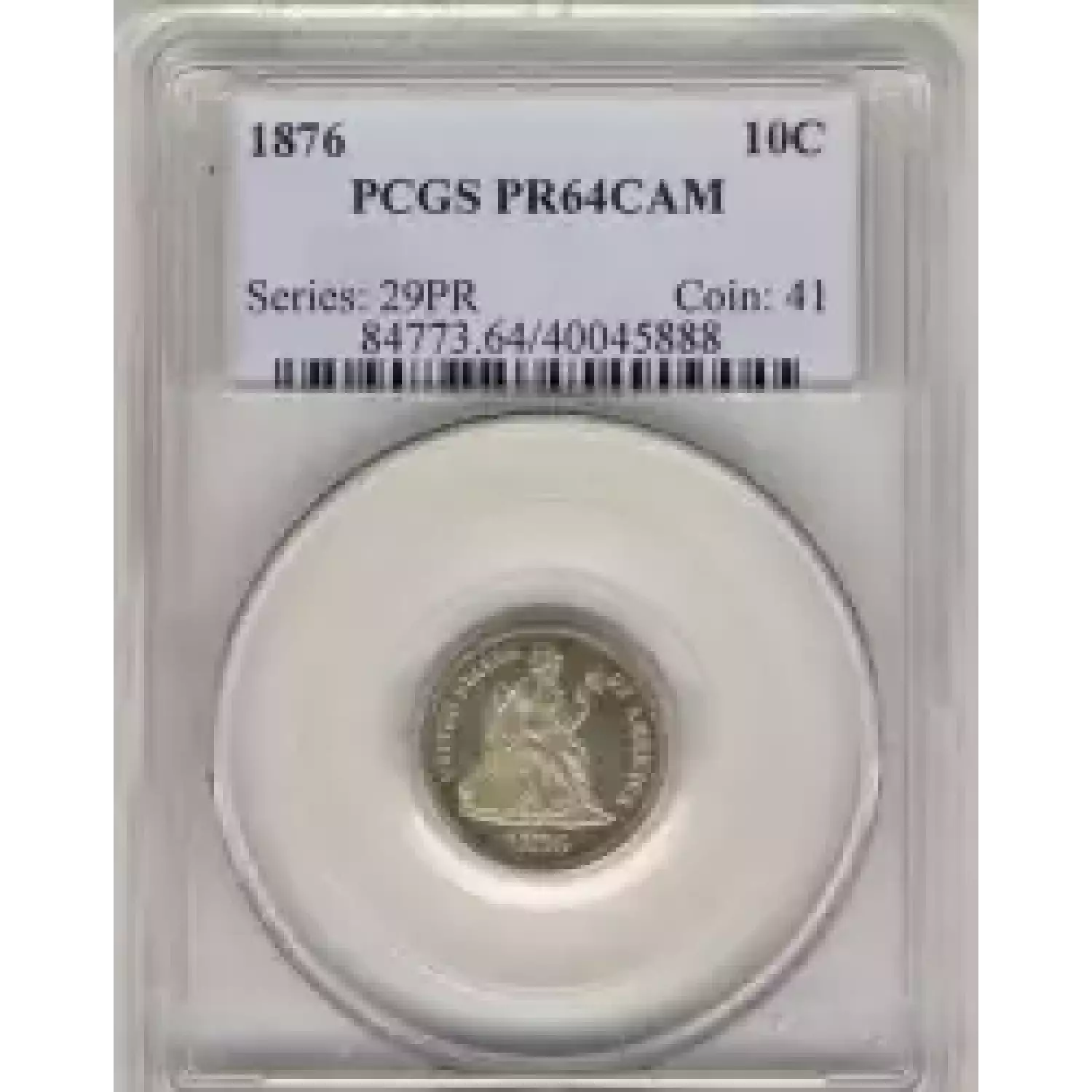 503876 | 1876-PR-64 Liberty Seated Dime PCGS PR-64 CAM | PCGS | PR-64 | Sold: 21/03/2007 | $800 |