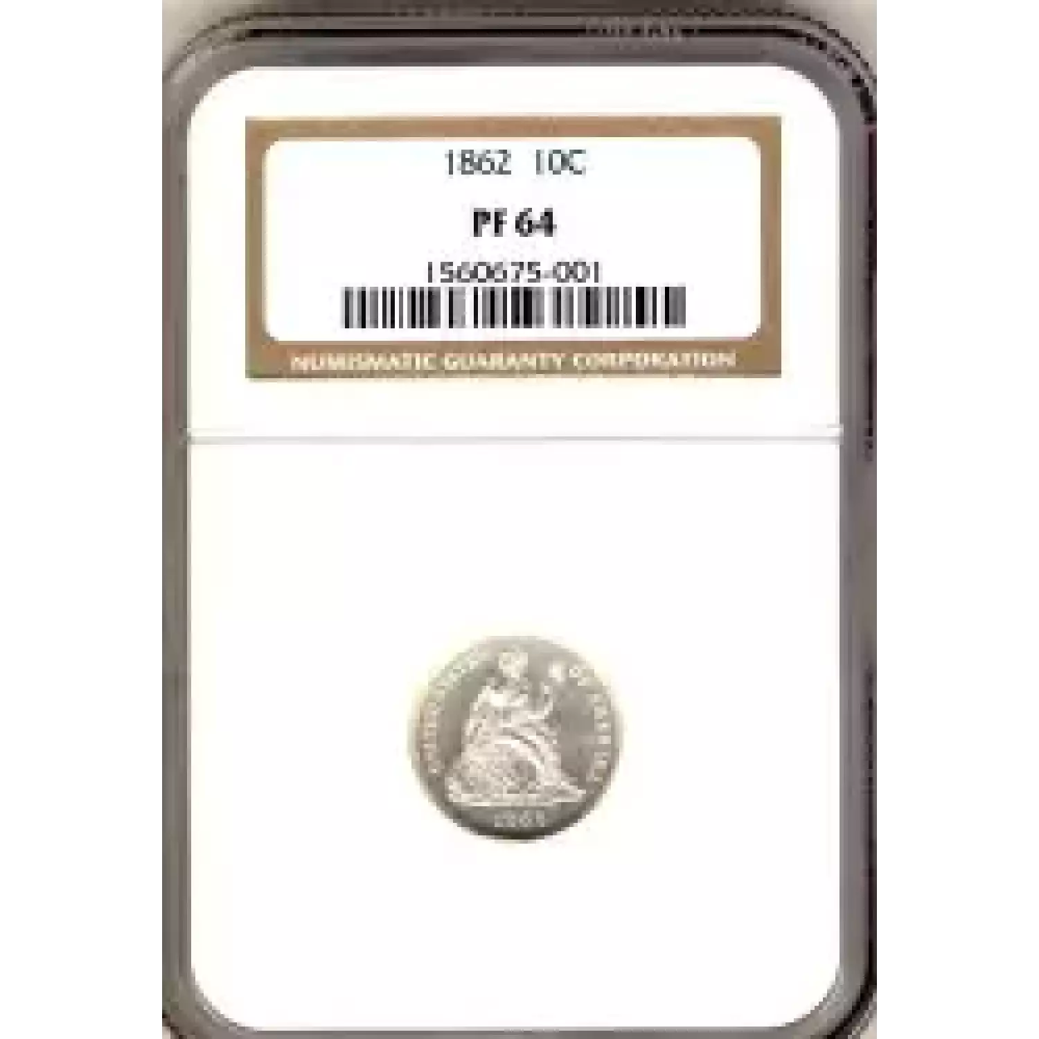 504264 | 1862-PF-64 Liberty Seated Dime NGC PF-64 | NGC | PF-64 | Sold: 09/10/2009 | $900 |