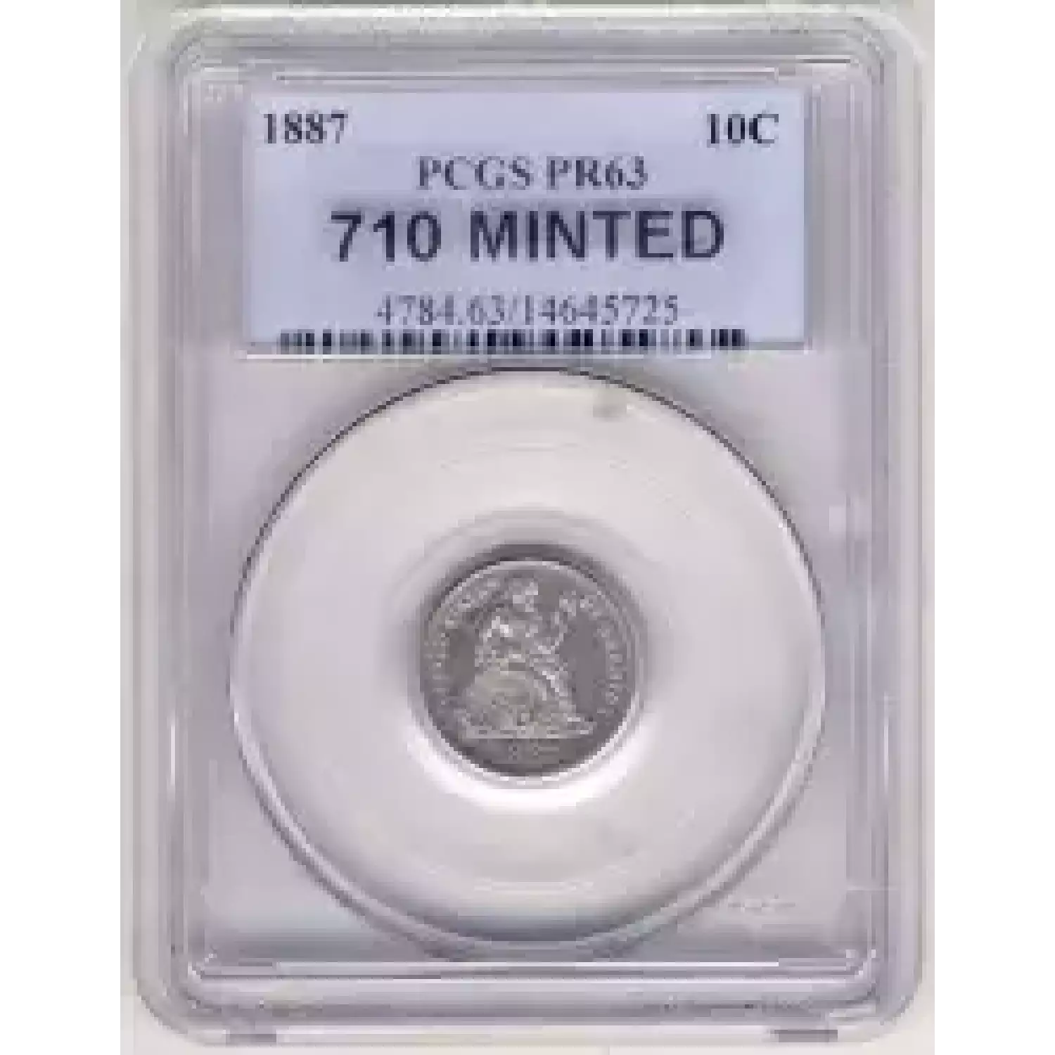 505222 | 1887-PR-63 Liberty Seated Dime PCGS PR-63 | PCGS | PR-63 | Sold: 07/08/2012 | $525 |