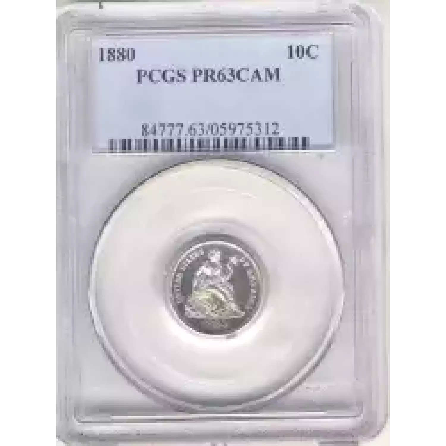 505728 | 1880-PR-63 Liberty Seated Dime PCGS PR-63 CAM | PCGS | PR-63 | Sold: 06/07/2011 | $600 |