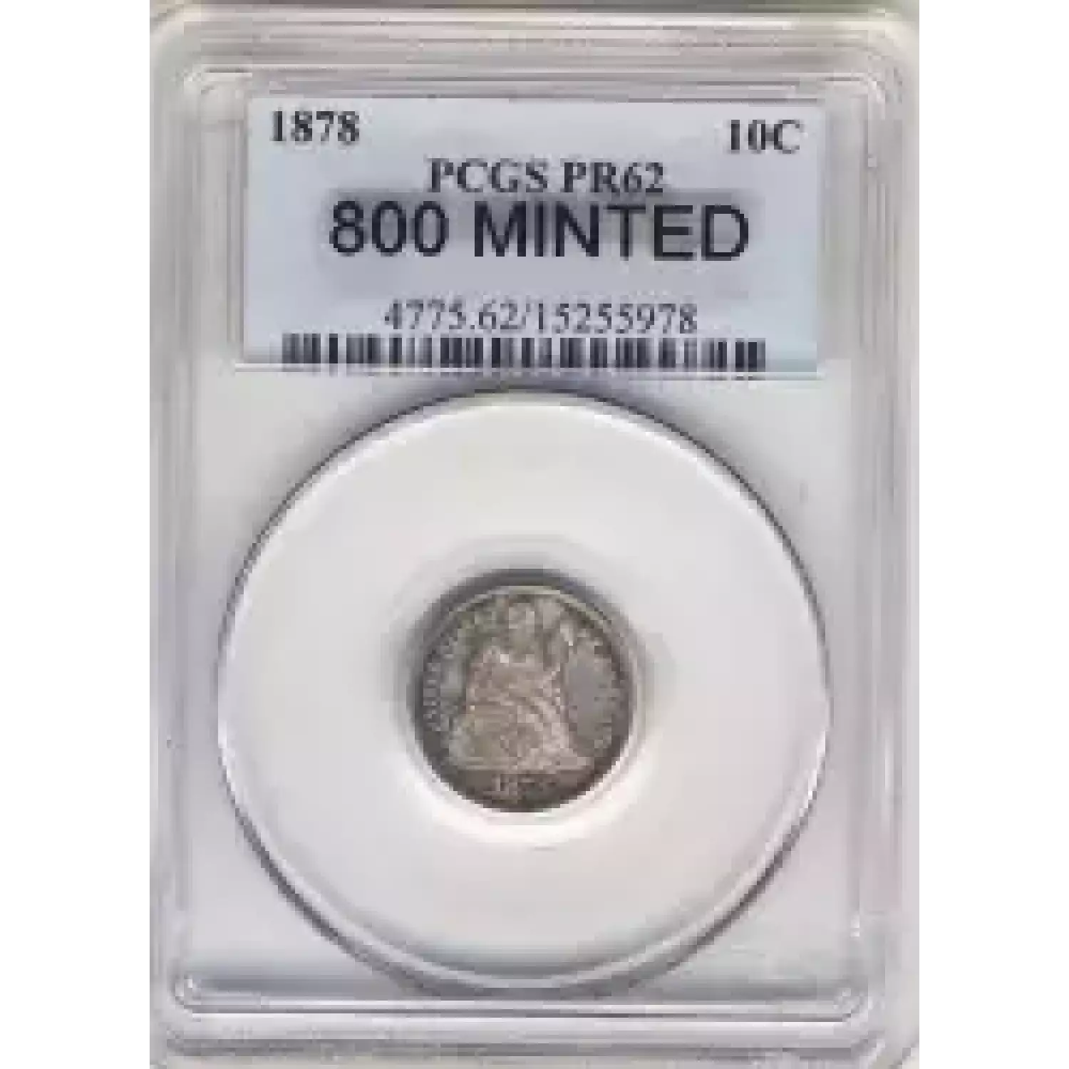 505991 | 1878-PR-62 Liberty Seated Dime PCGS PR-62 | PCGS | PR-62 | Sold: 21/03/2012 | $385 |