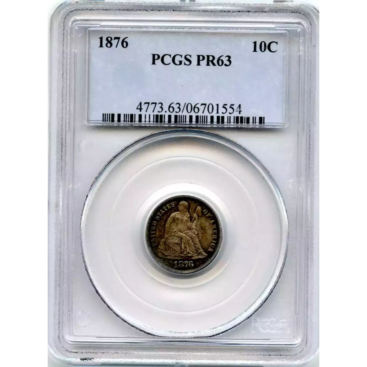 507173 | 1876-PR-63 Liberty Seated Dime PCGS PR-63 | PCGS | PR-63 | Sold: 12/01/2014 | $525 |