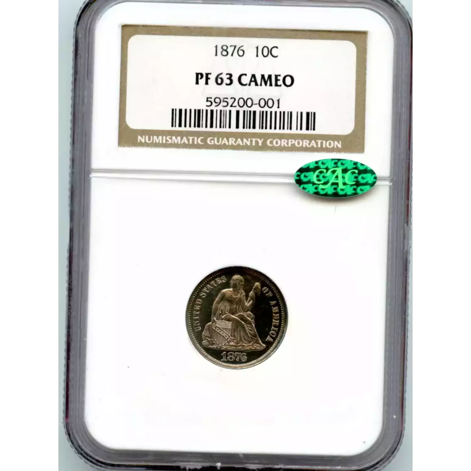 507338 | 1876-PF-63 Liberty Seated Dime NGC PF-63 CAM CAC | NGC | PF-63 | Sold: 10/12/2015 | $675 |