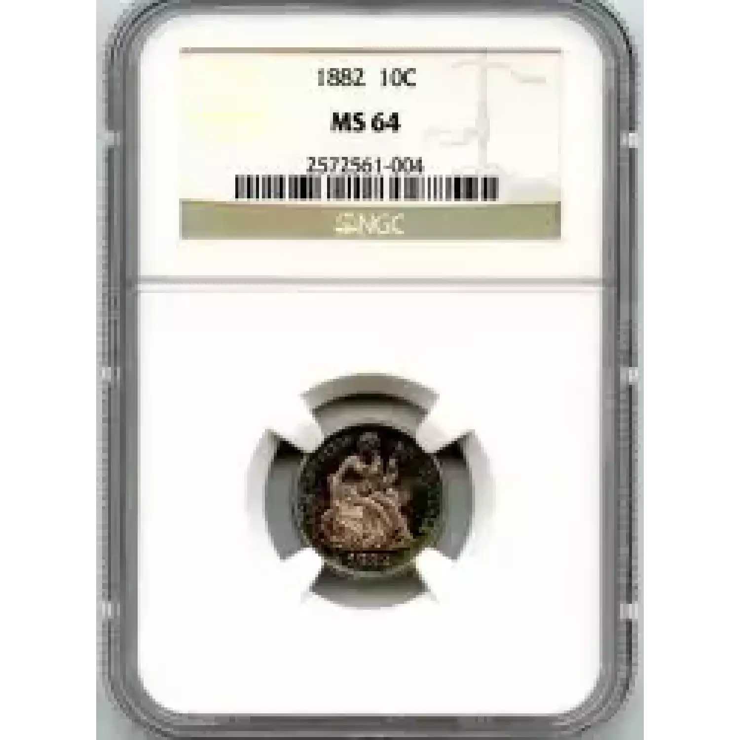 507690 | 1882-MS-64 Liberty Seated Dime NGC MS-64 | NGC | MS-64 | Sold: 05/08/2014 | $340 |