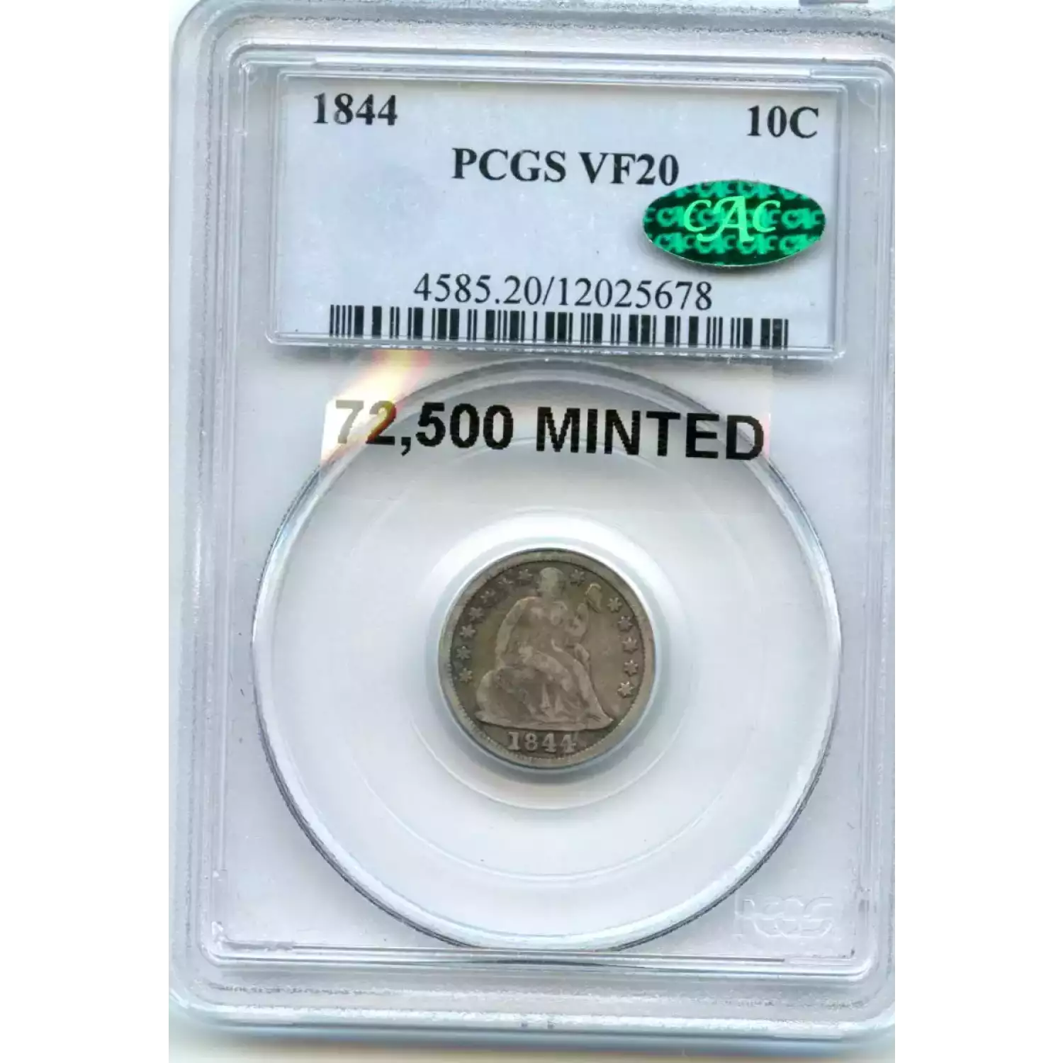 508462 | 1844-VF-20 Liberty Seated Dime PCGS VF-20 CAC | PCGS | VF-20 | Sold: 04/07/2016 | $410.09 |