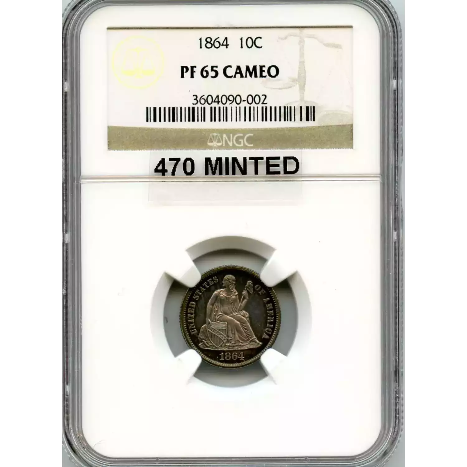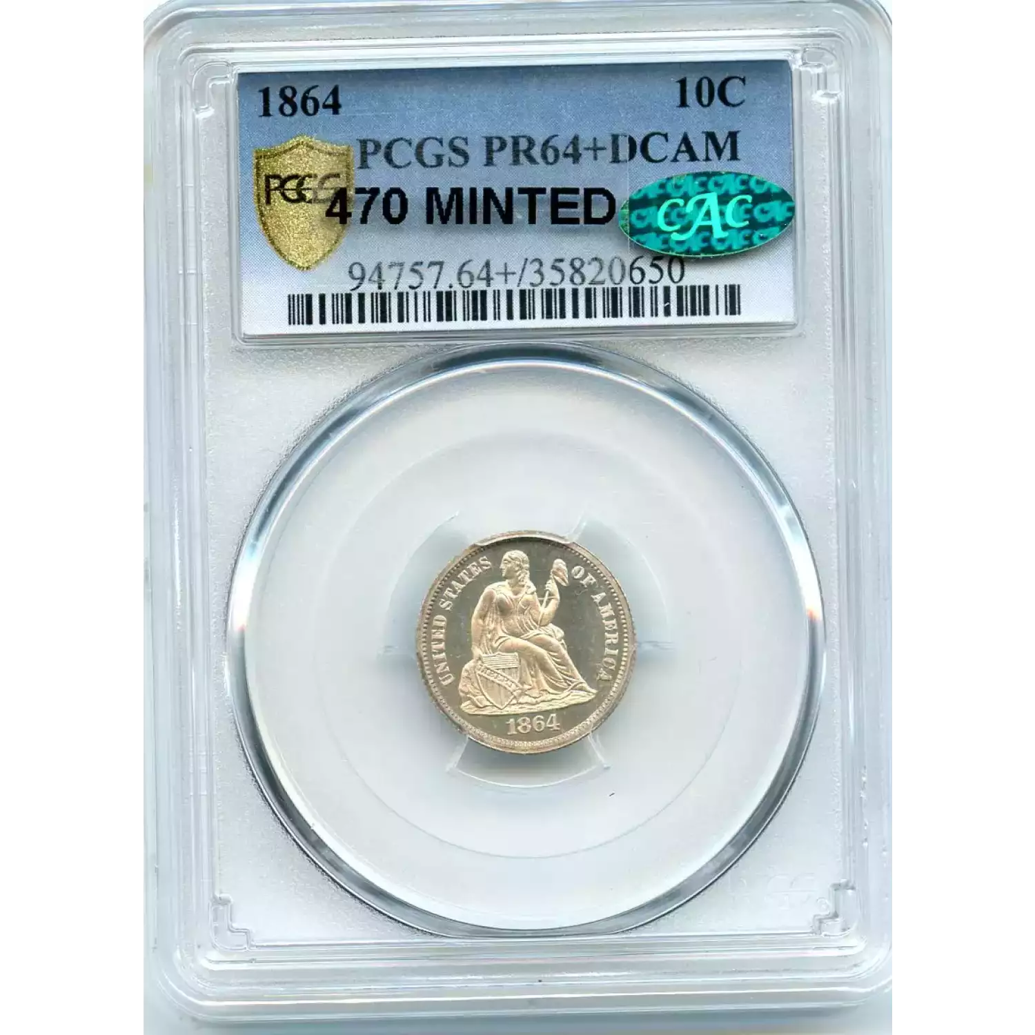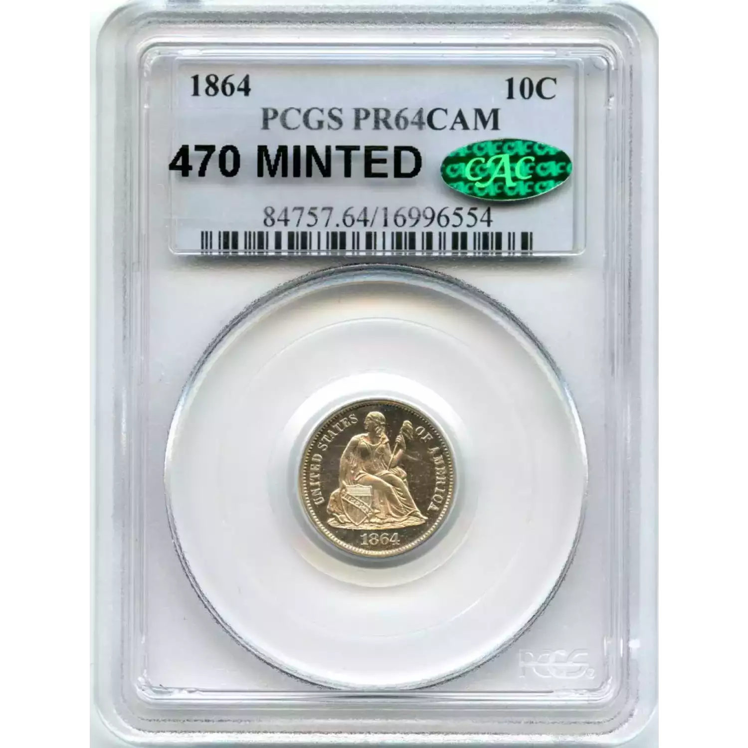 512189 | 1864-PR-64 Liberty Seated Dime PCGS PR-64 DCAM CAC | PCGS | PR-64 | Sold: 01/11/2018 | $3,150 |