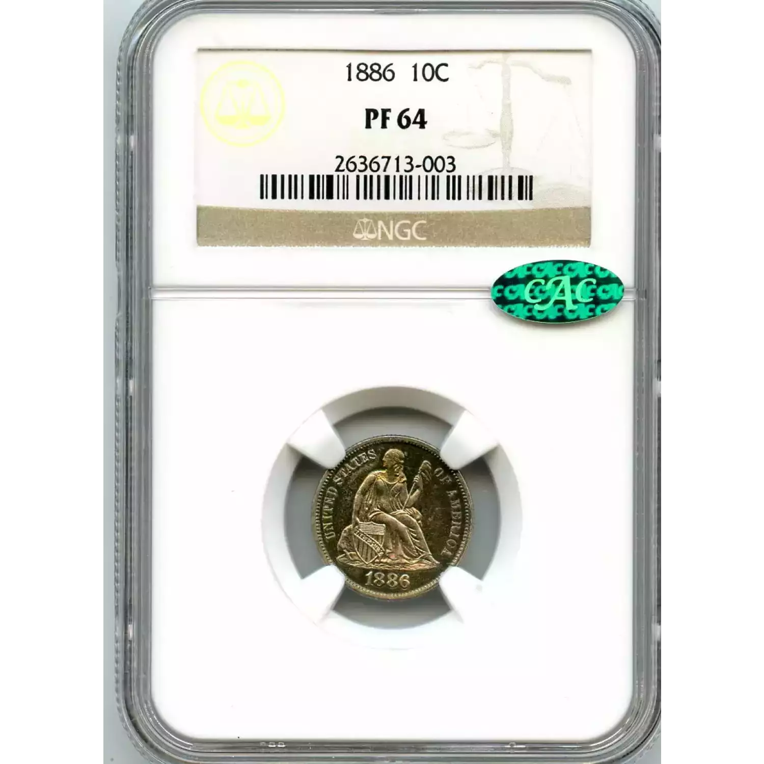 508530 | 1886-PF-64 Liberty Seated Dime NGC PF-64 | NGC | PF-64 | Sold: 23/08/2016 | $855 |