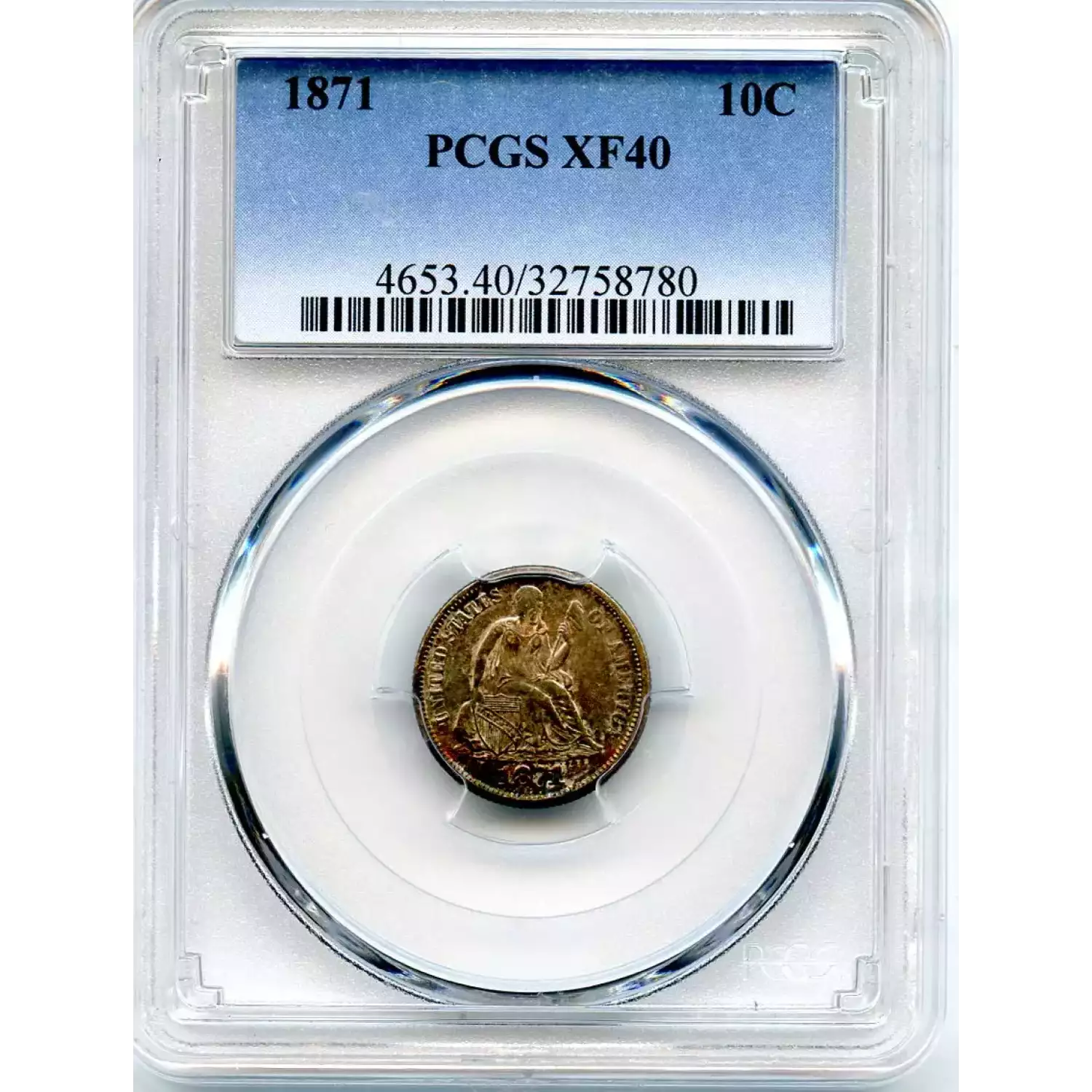 508744 | 1871-XF-40 Liberty Seated Dime PCGS XF-40 | PCGS | XF-40 | Sold: 19/10/2015 | $75 |