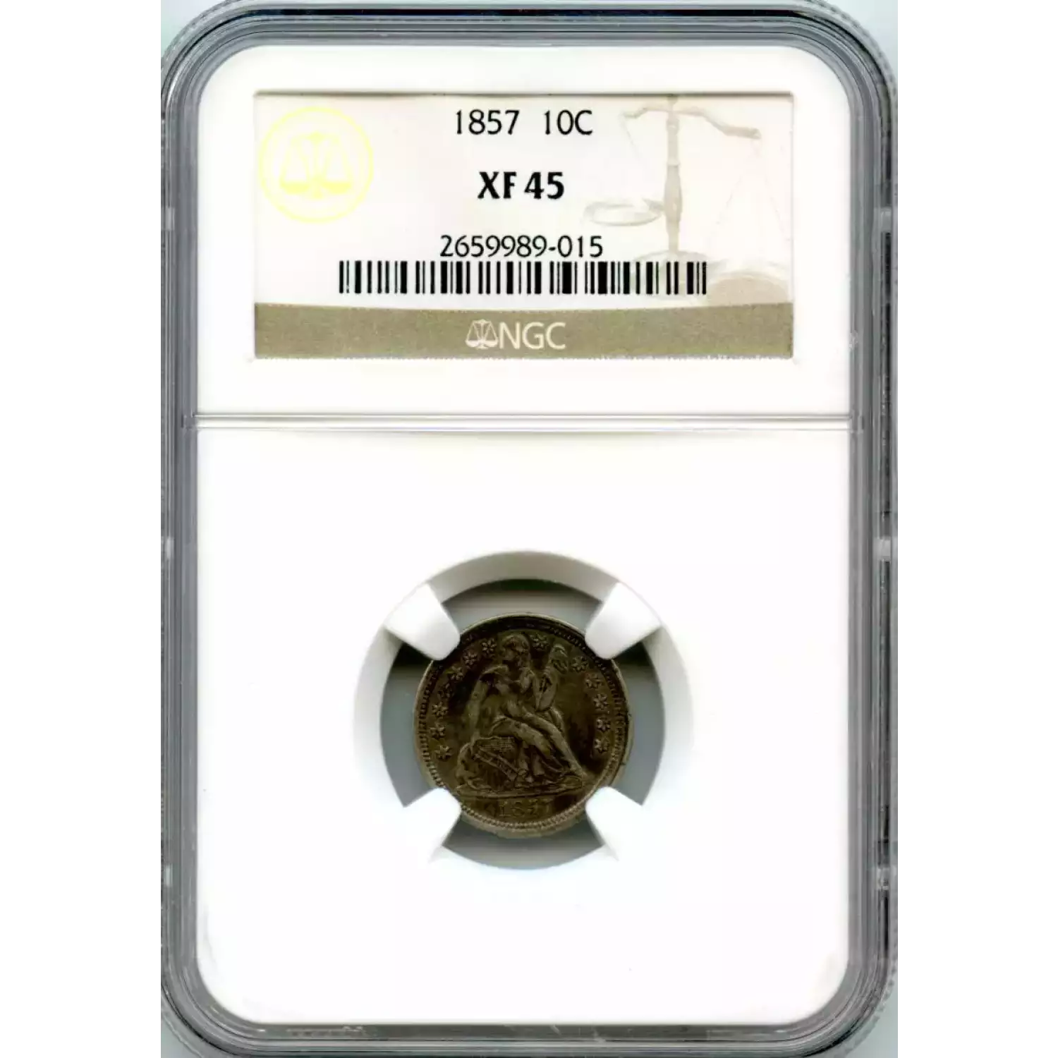 508762 | 1857-XF-45 Liberty Seated Dime NGC XF-45 | NGC | XF-45 | Sold: 22/01/2017 | $68 |