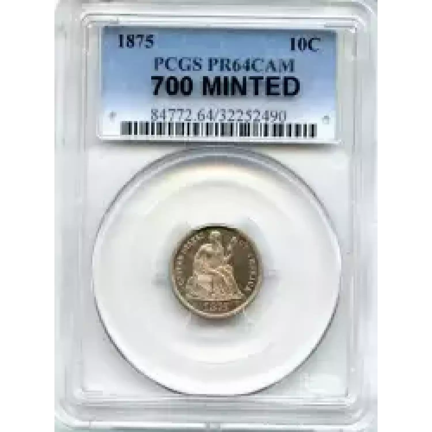508854 | 1875-PR-64 Liberty Seated Dime PCGS PR-64 CAM | PCGS | PR-64 | Sold: 03/09/2015 | $710 |