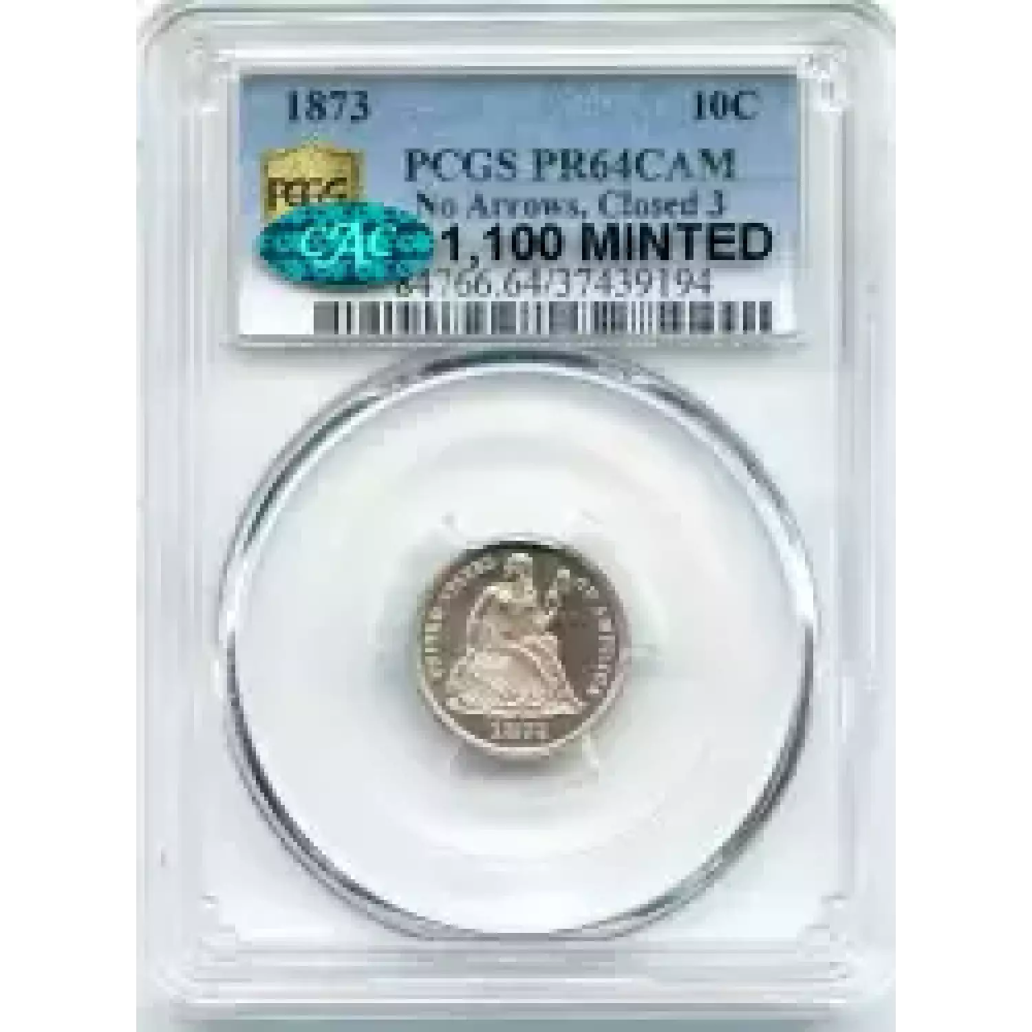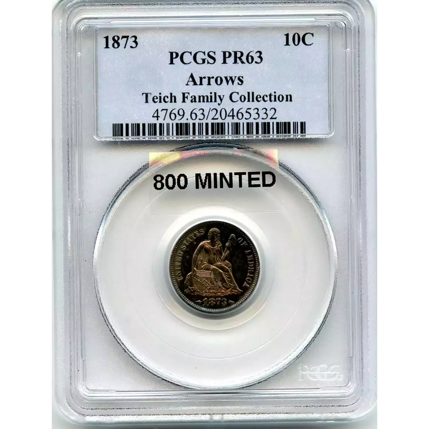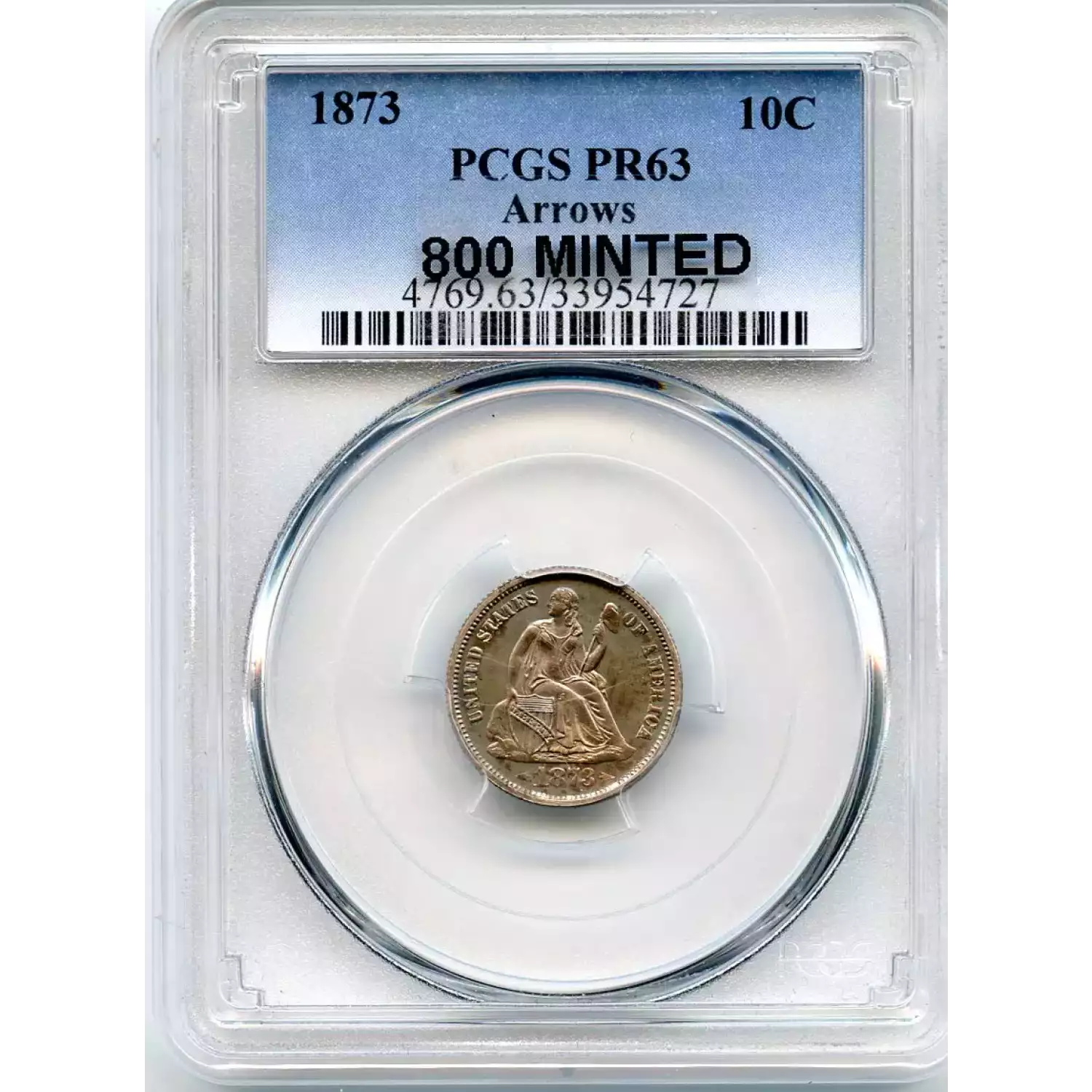 511259 | 1873-PR-63 Liberty Seated Dime PCGS PR-63 | PCGS | PR-63 | Sold: 06/01/2019 | $675 |