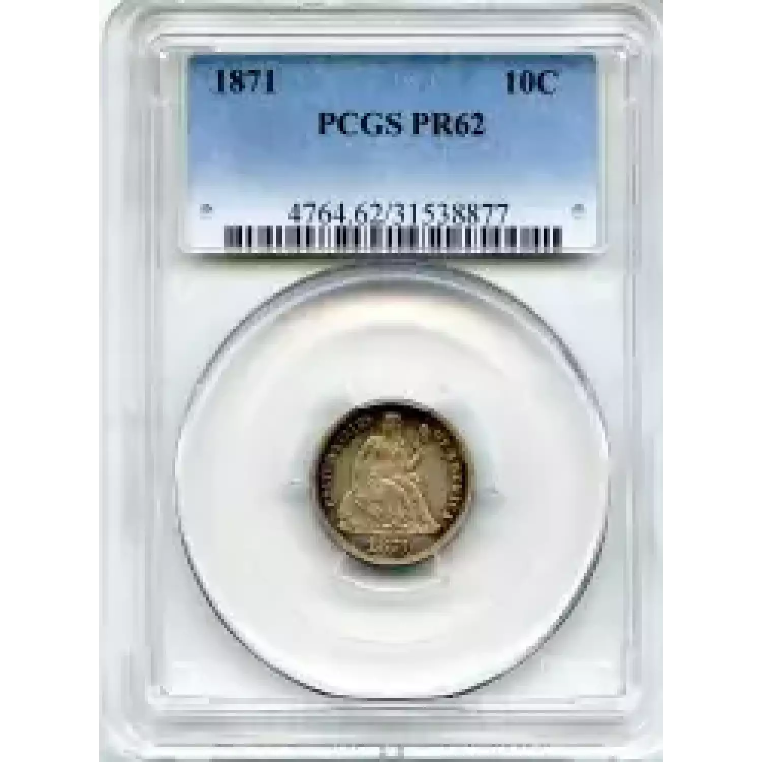509524 | 1871-PR-62 Liberty Seated Dime PCGS PR-62 | PCGS | PR-62 | Sold: 05/07/2016 | $335.88 |