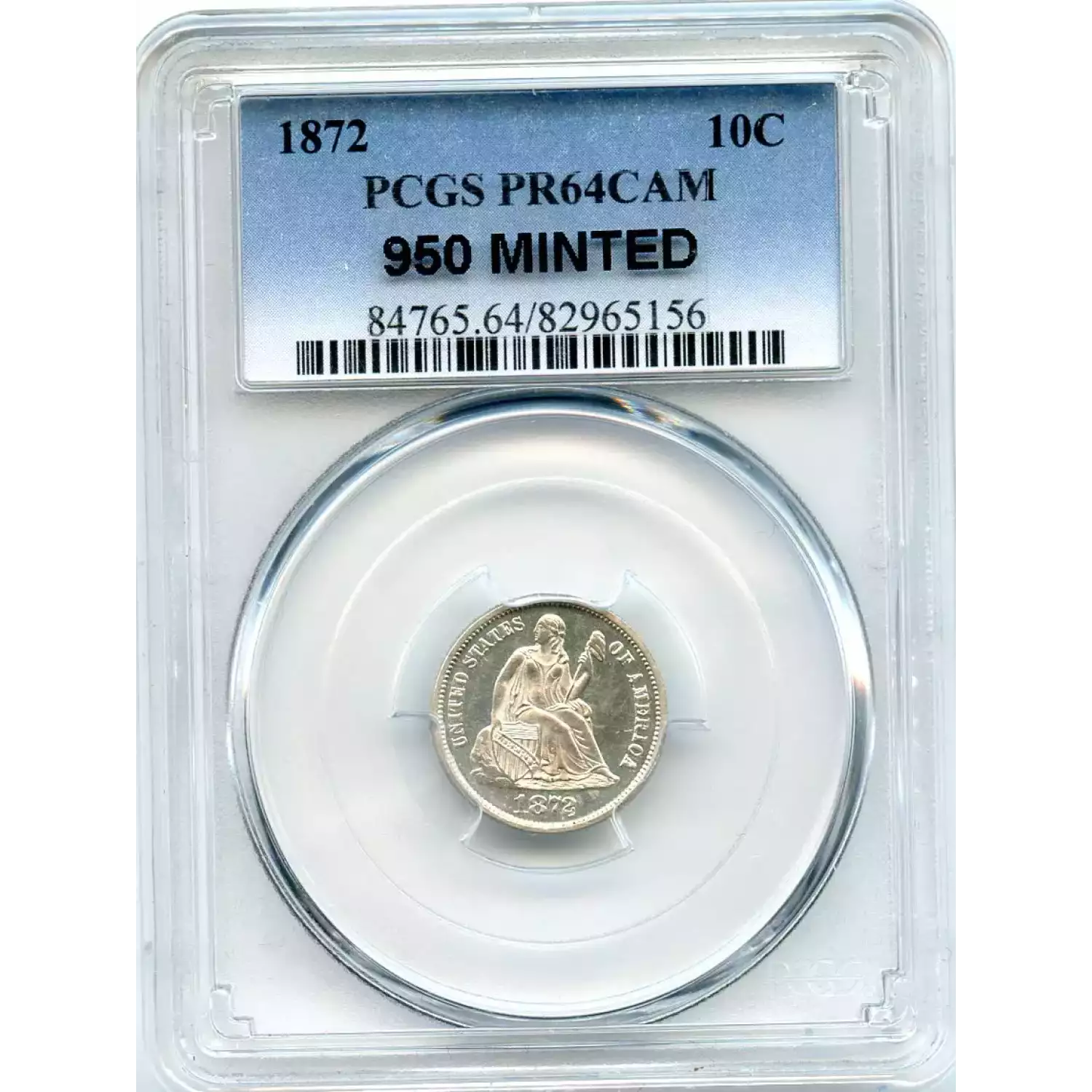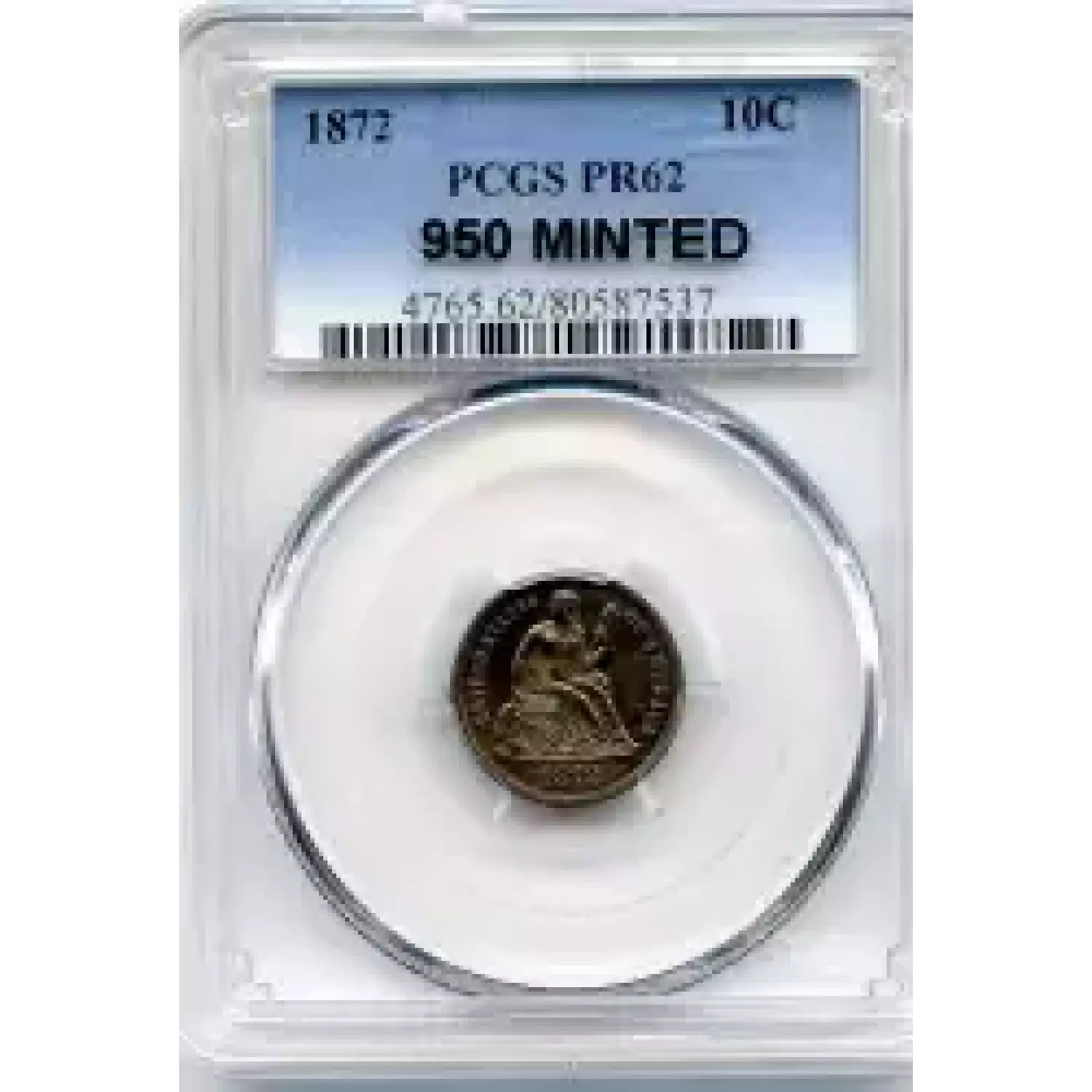 509729 | 1872-PR-62 Liberty Seated Dime PCGS PR-62 | PCGS | PR-62 | Sold: 30/11/2016 | $427.50 |