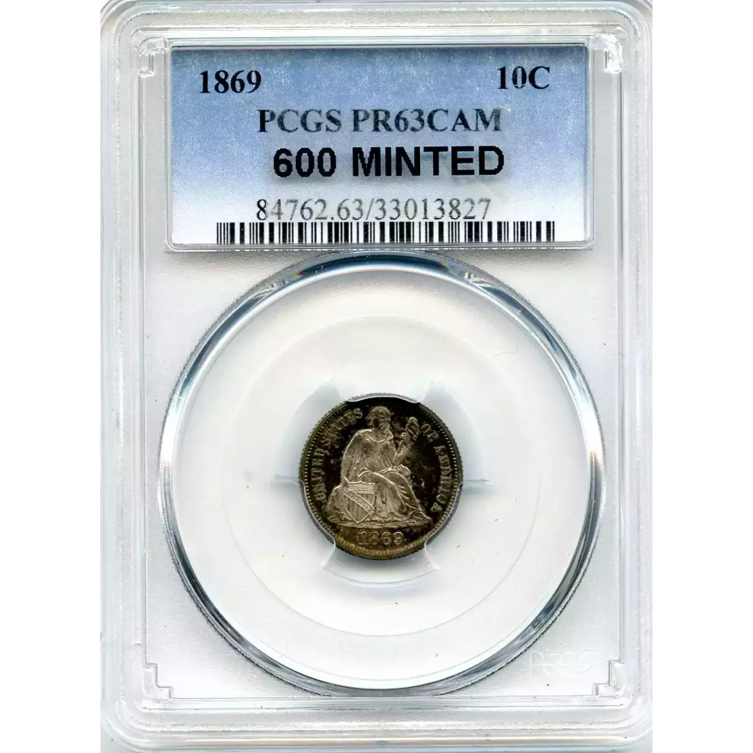 510042 | 1869-PR-63 Liberty Seated Dime PCGS PR-63 CAM | PCGS | PR-63 | Sold: 31/05/2017 | $675 |