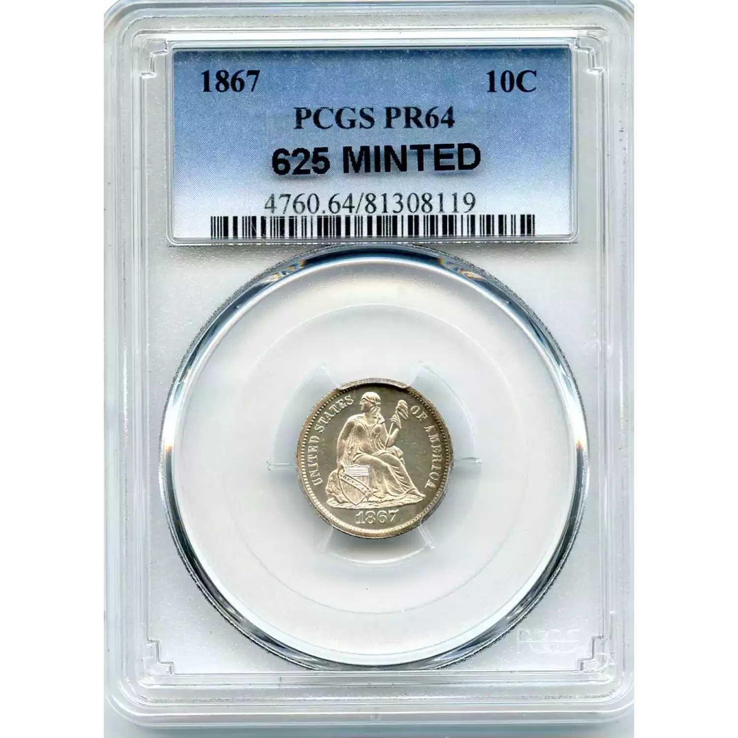 510675 | 1867-PR-64 Liberty Seated Dime PCGS PR-64 | PCGS | PR-64 | Sold: 24/06/2017 | $1,200 |