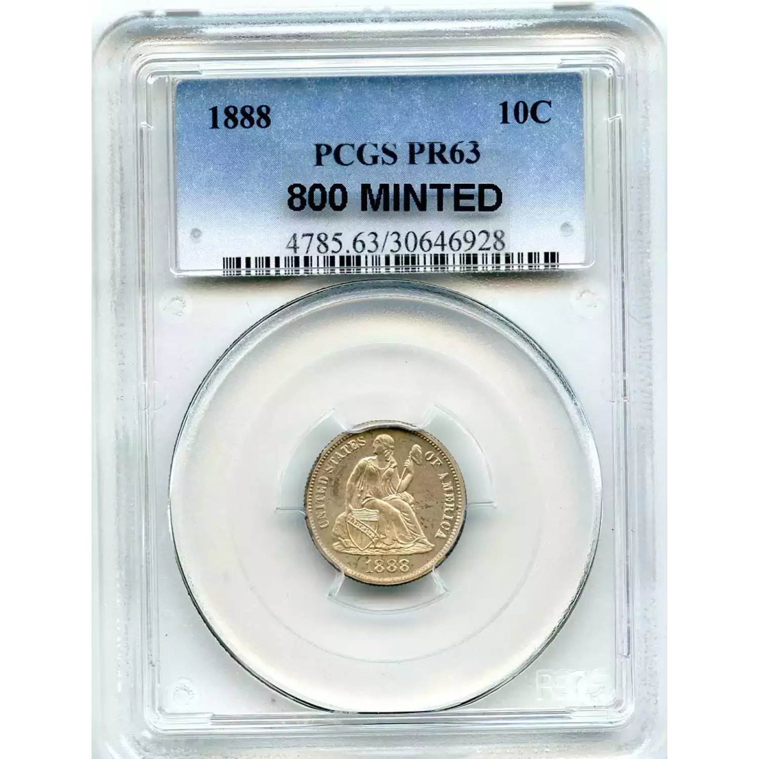 511261 | 1888-PR-63 Liberty Seated Dime PCGS PR-63 | PCGS | PR-63 | Sold: 06/10/2019 | $356 |