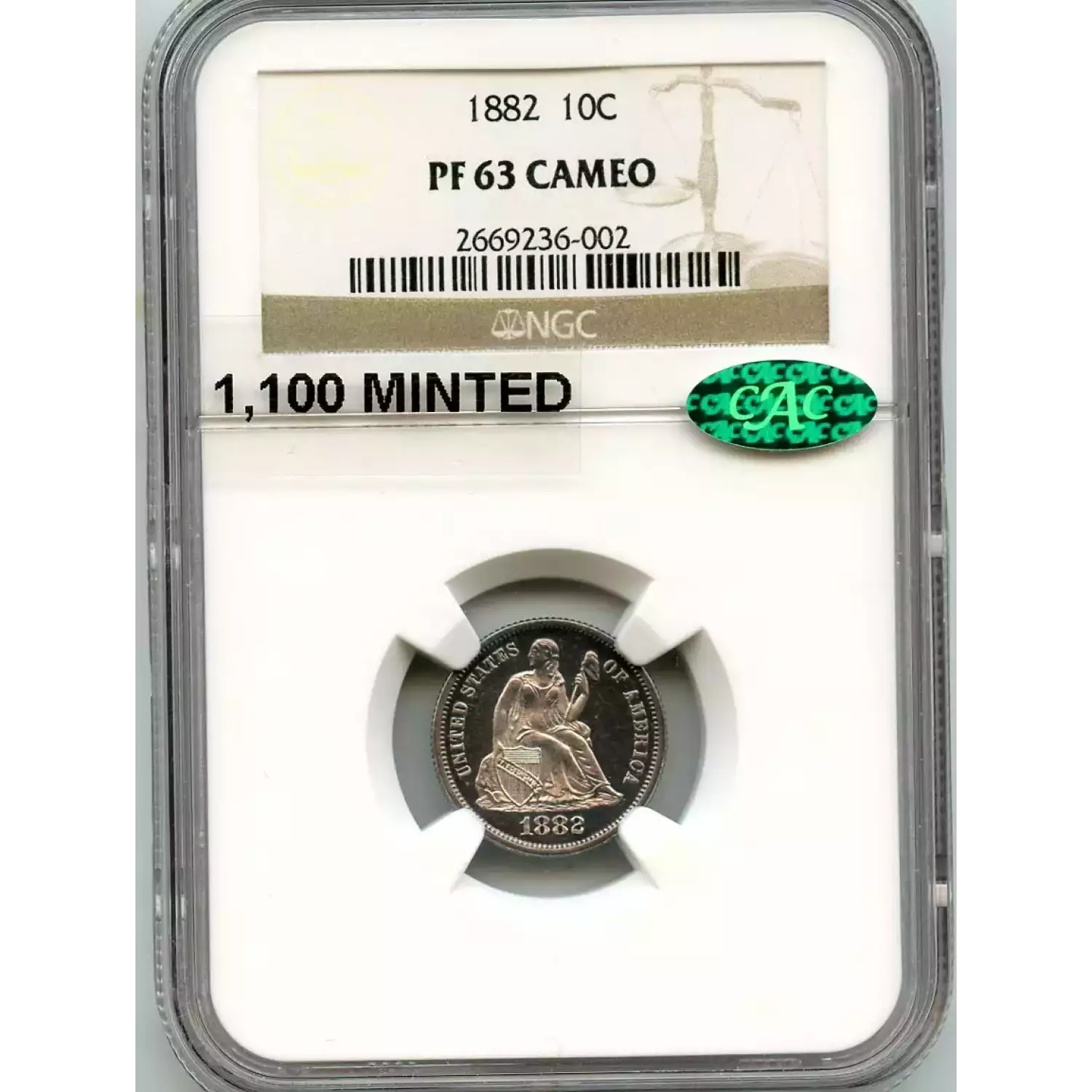 507356 | 1882-PR-65 Liberty Seated Dime PCGS PR-65 CAM | PCGS | PR-65 | Sold: 14/04/2014 | $1,225 |