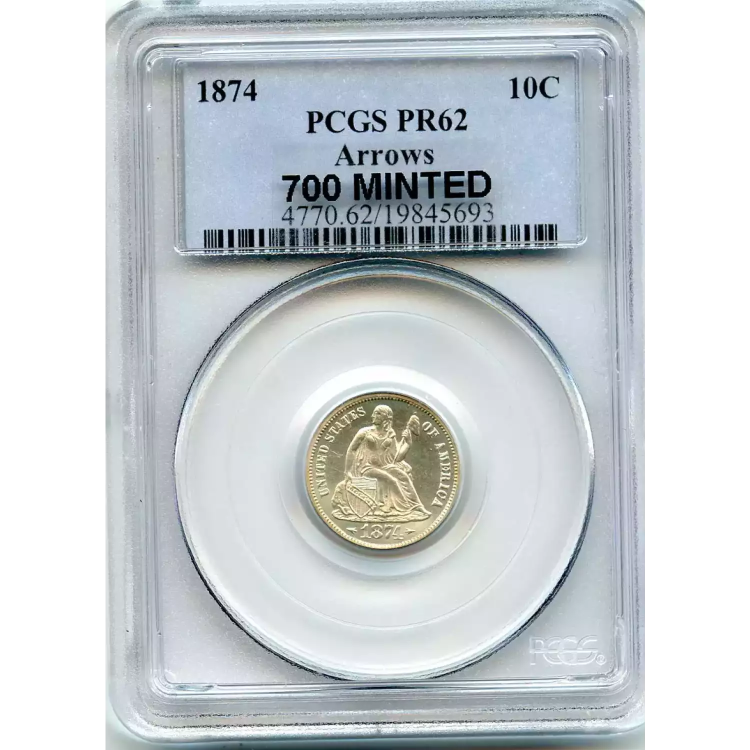 512181 | 1874-PR-62 Liberty Seated Dime PCGS PR-62 | PCGS | PR-62 | Sold: 22/10/2018 | $765 |