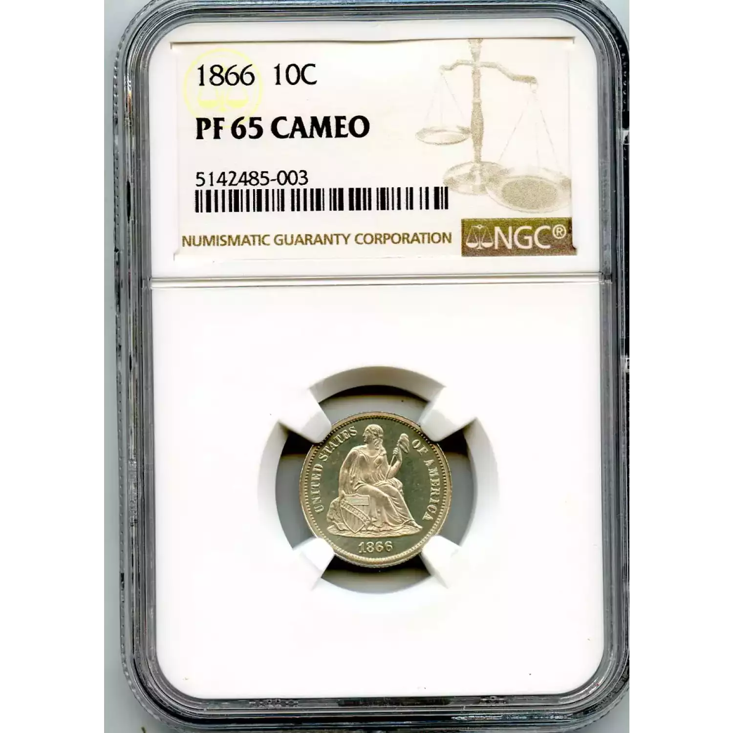 513667 | 1866-PR-65 Liberty Seated Dime NGC PR-65 CAM | NGC | PR-65 | Sold: 04/05/2020 | $1,275 |