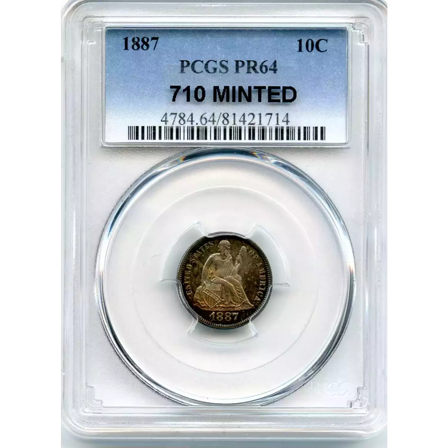513787 | 1887-PR-64 Liberty Seated Dime PCGS PR-64 | PCGS | PR-64 | Sold: 01/03/2020 | $575 |
